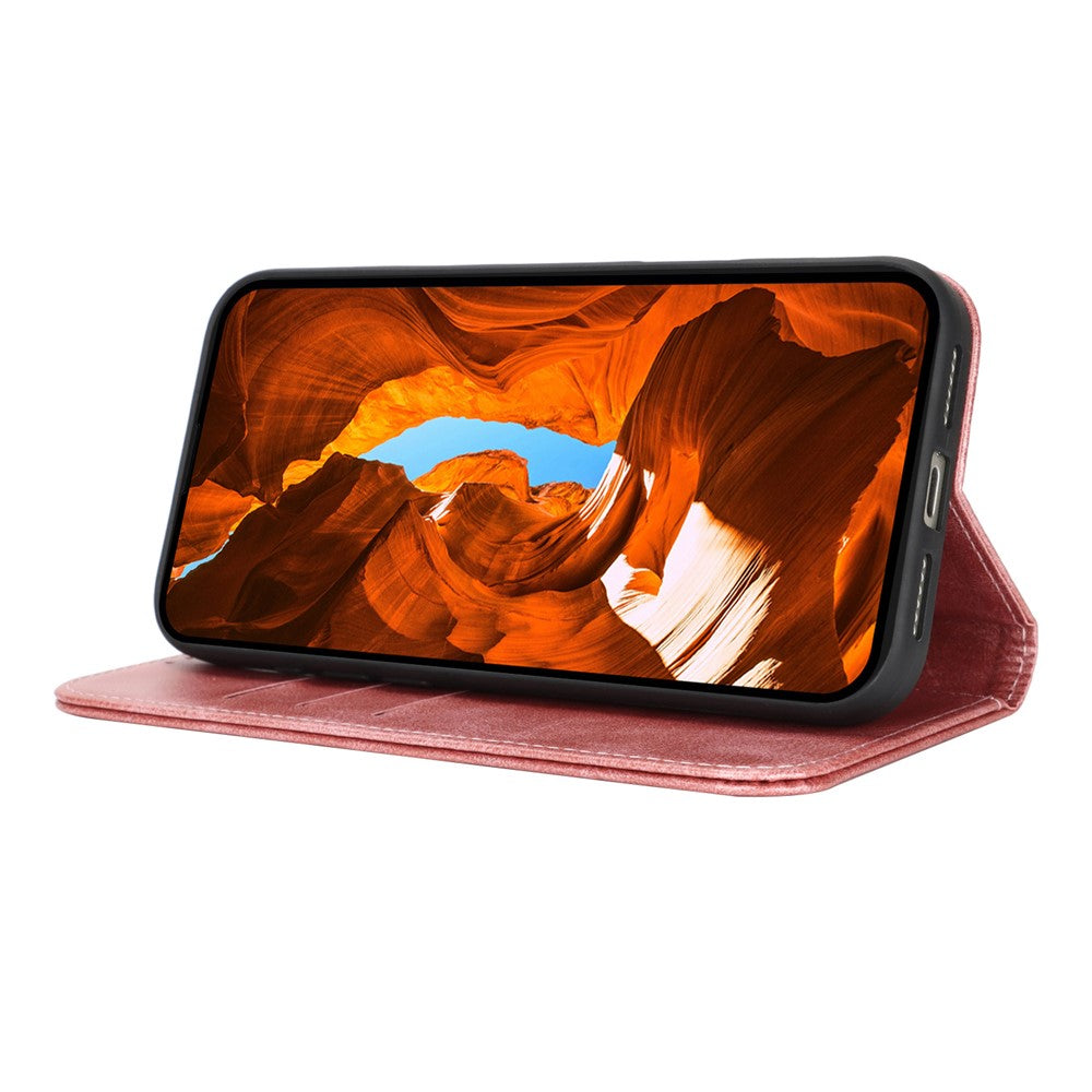 For iPhone 17 Pro Max Case PU Leather Calf Textured Magnetic Closing Smart Phone Cover - Rose Gold
