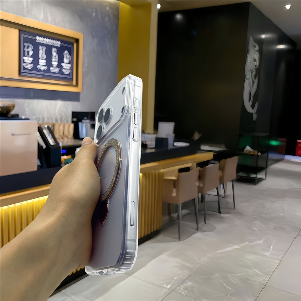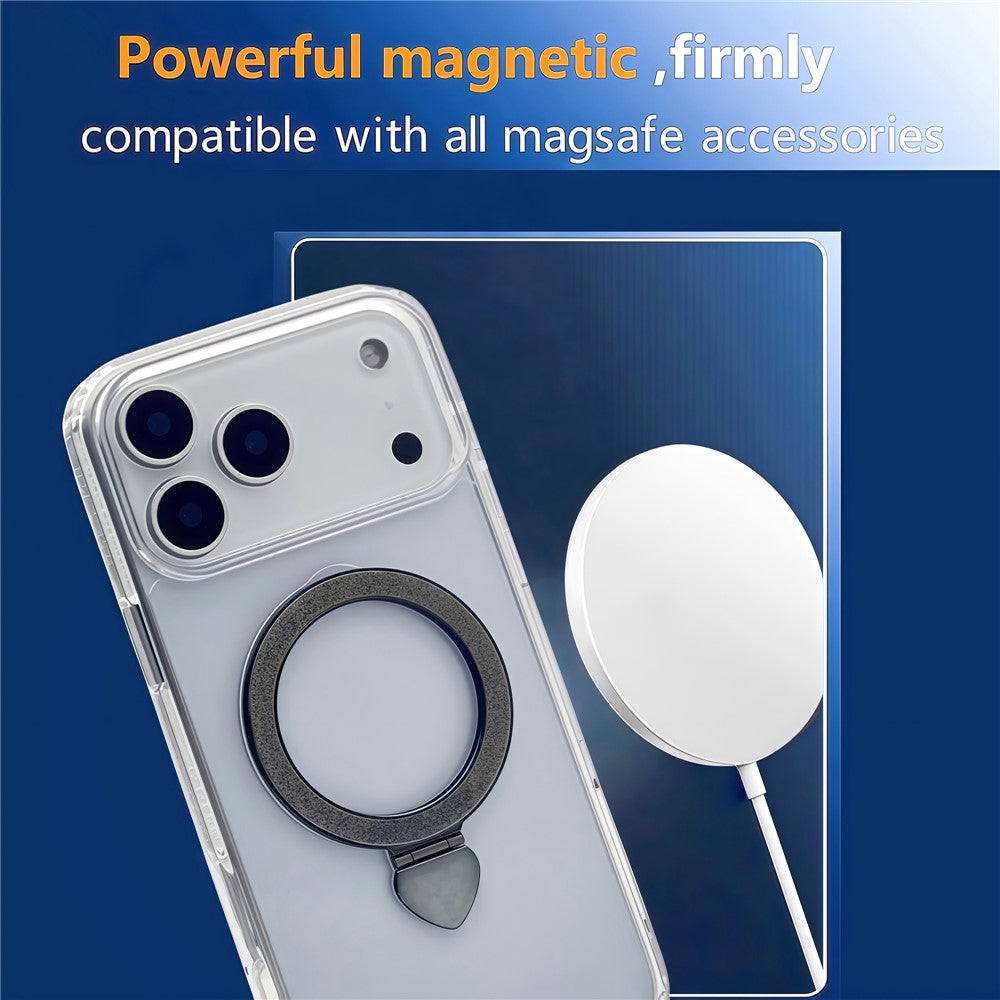 For iPhone 17 Pro Max Case TPU + Acrylic Clear Phone Cover with Glitter Ring Kickstand - Black