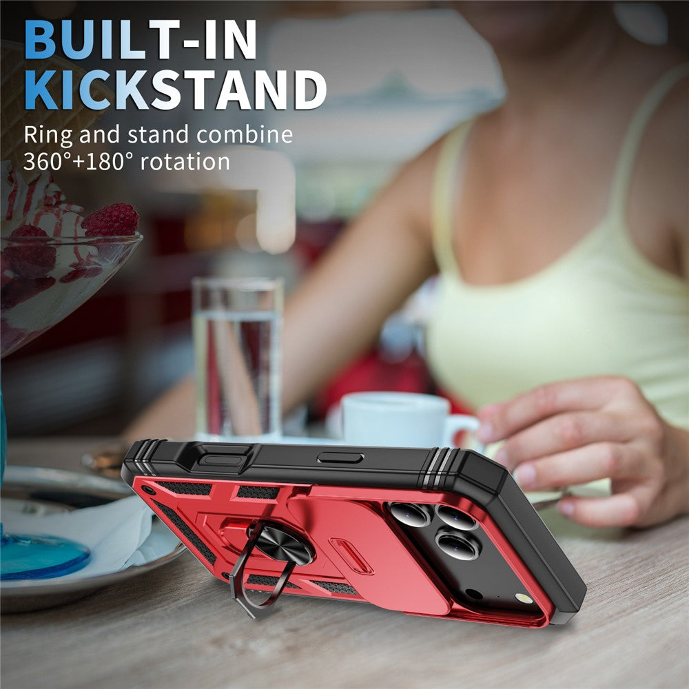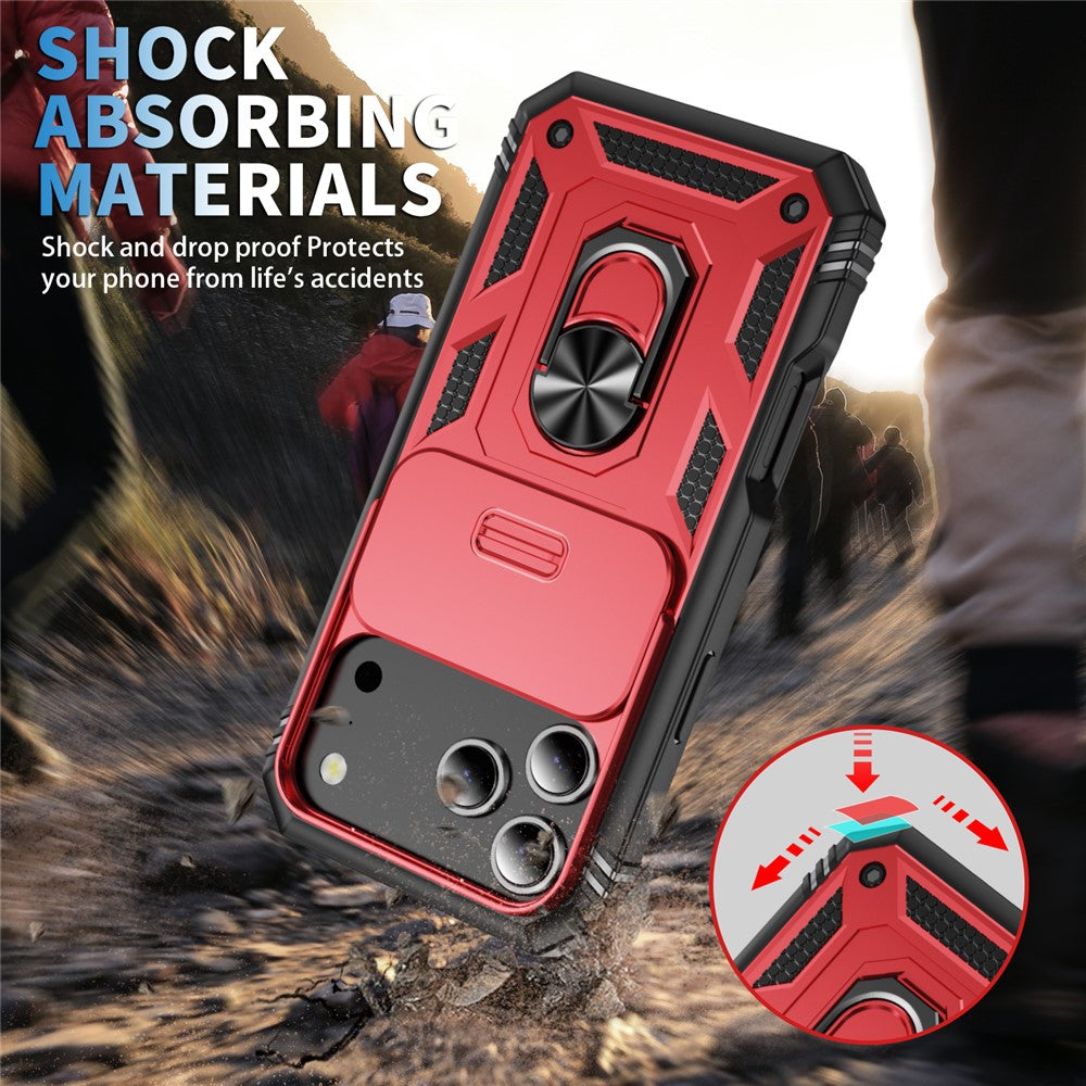 For iPhone 17 Pro Max Case TPU + PC Slide Camshield Kickstand Phone Cover - Red