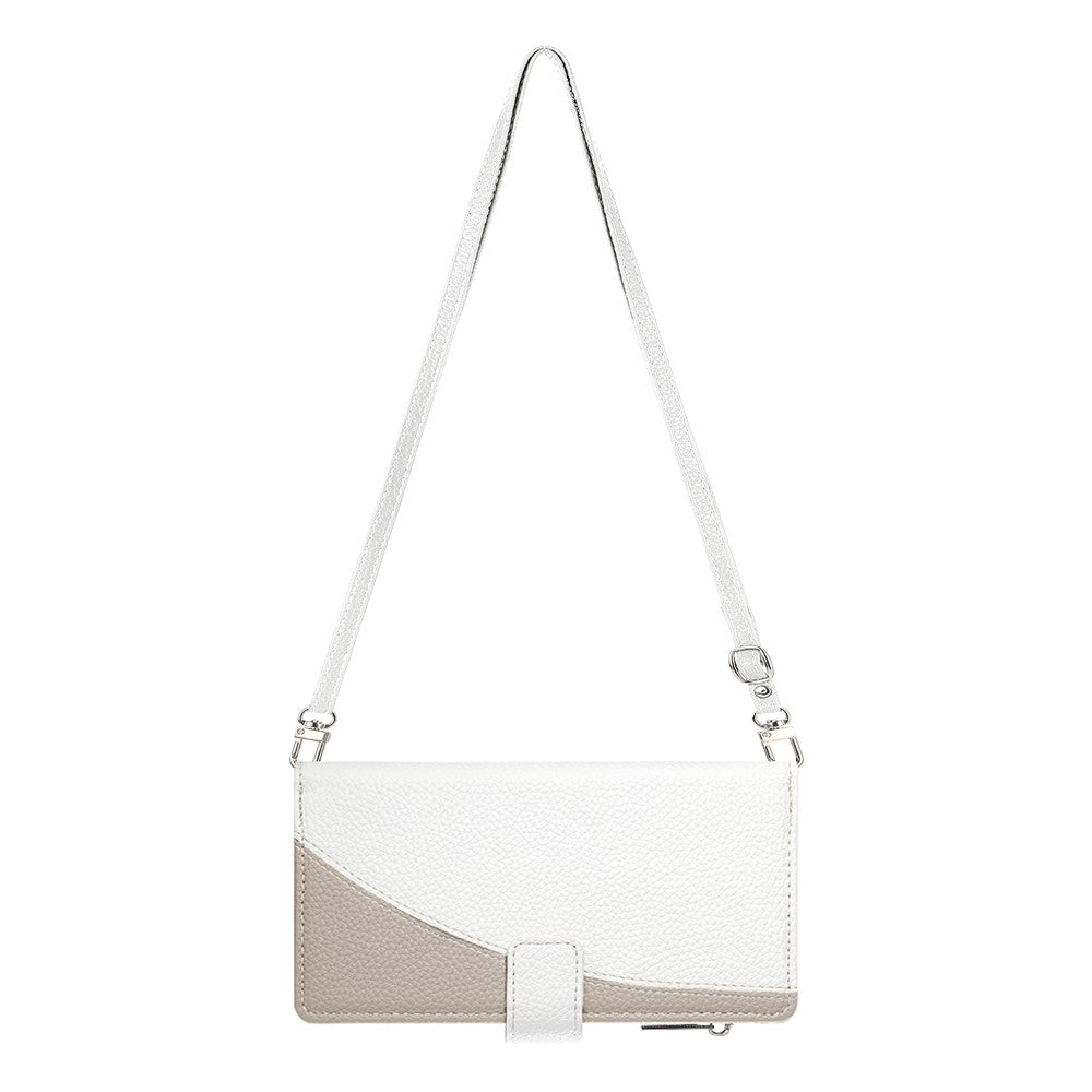 For iPhone 17 Pro Max Case Zipper Wallet Color Splicing Leather Flip Phone Cover with Straps - White