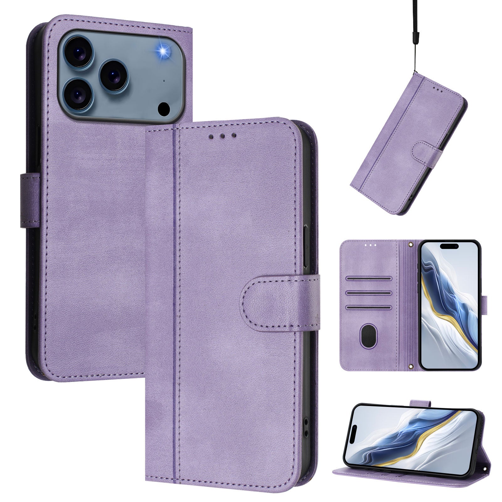 For iPhone 17 Pro Max Cases Wallet Stand Retro Texture Leather Phone Cover with Lanyard - Light Purple