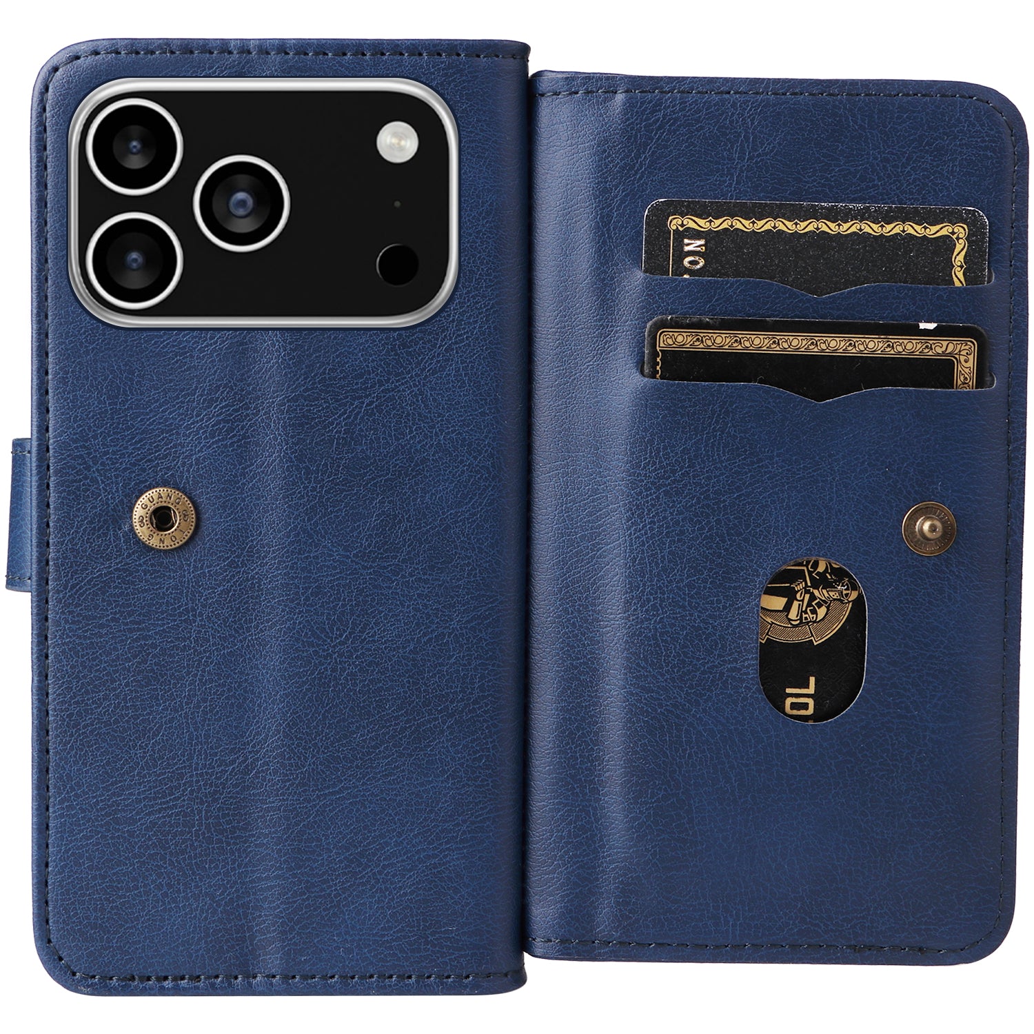 For iPhone 17 Pro Max Leather Case with 10 Card Holder Phone Cover Stand - Blue
