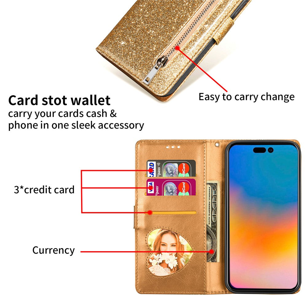 - ?Durable and Stylish Protection?Quality PU leather combined with a TPU case offers great drop resistance and shock absorption. The added glittery powder makes the case dazzling in the sun or under light