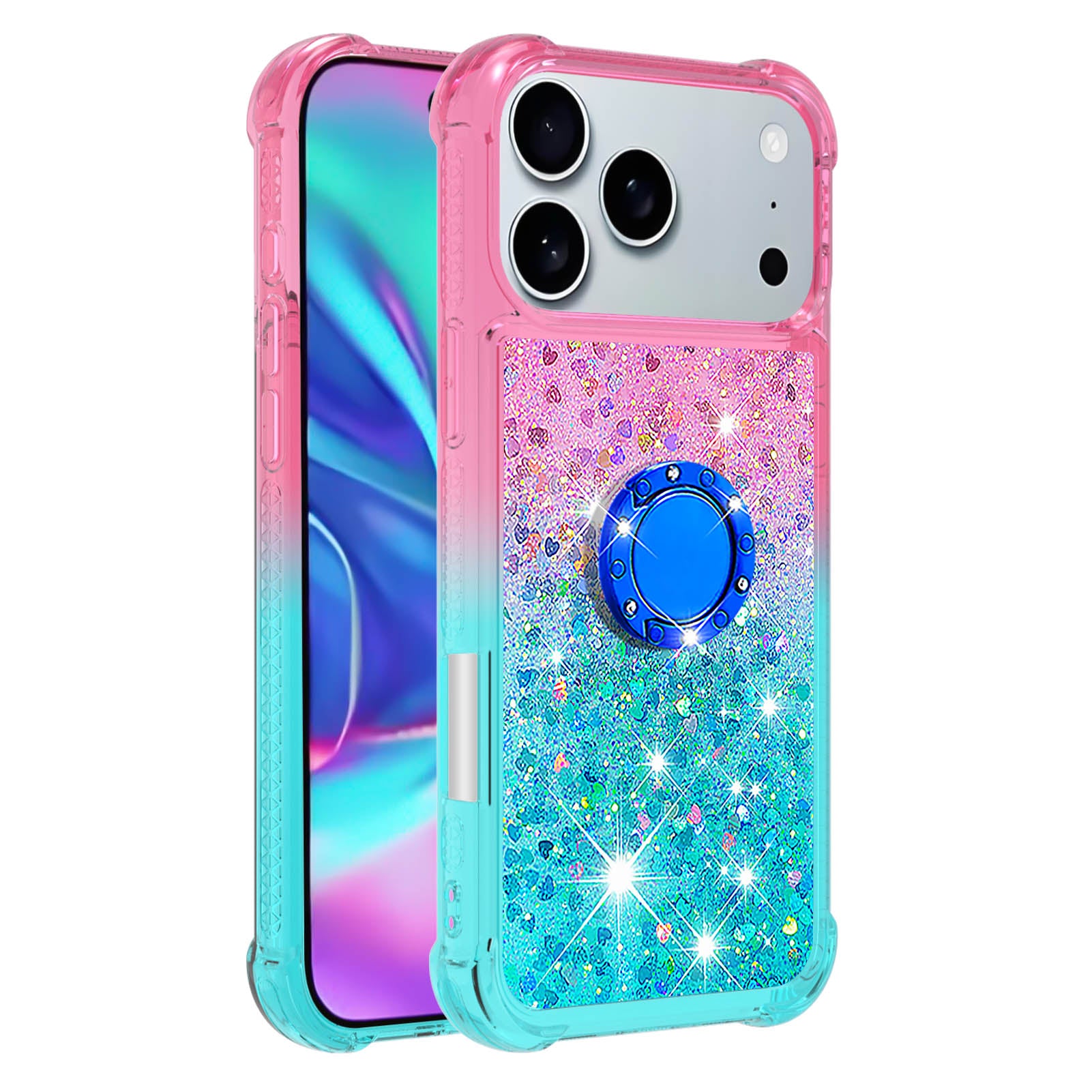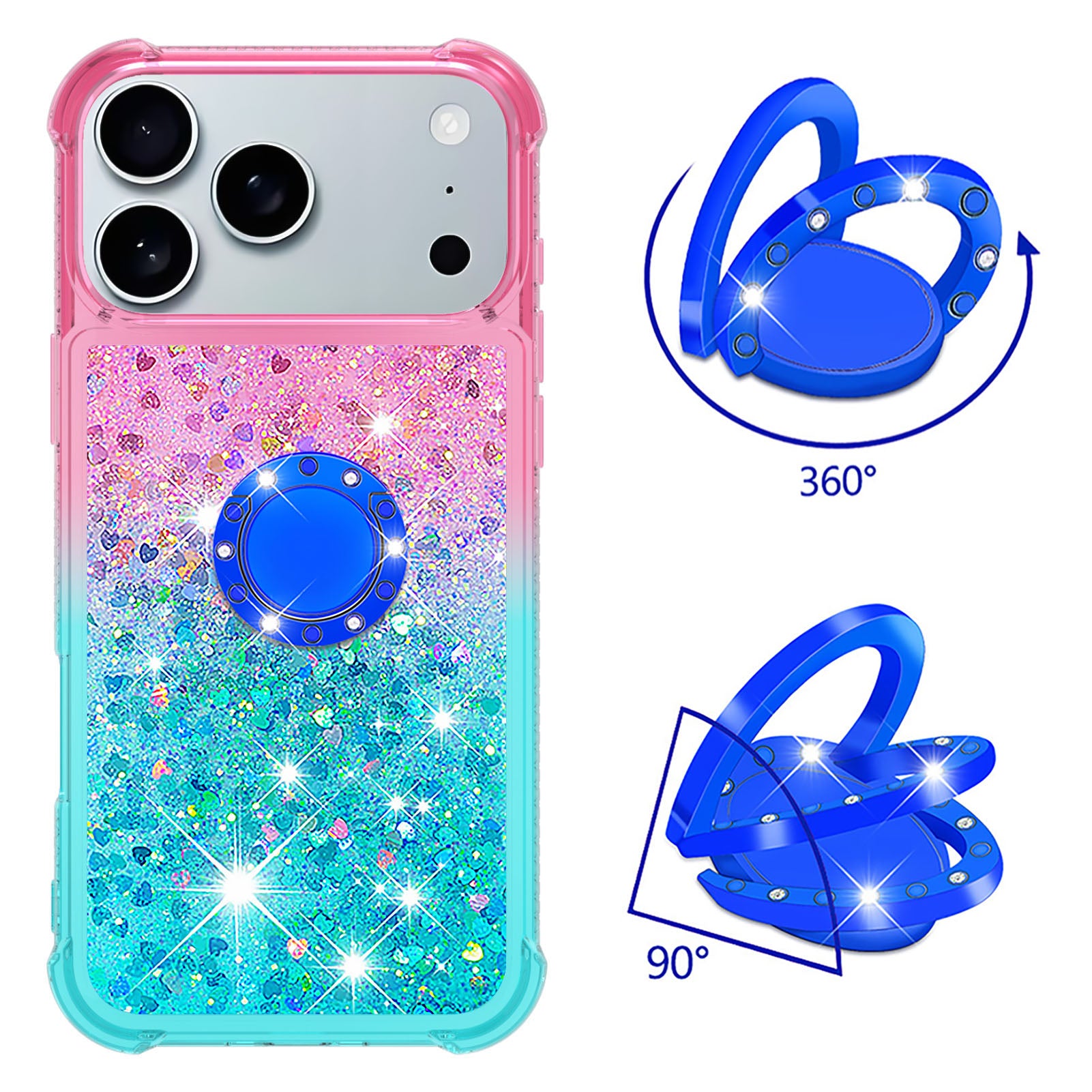 For iPhone 17 Pro Max TPU Case with Kickstand Gradiant Quicksand Shockproof Cover - Pink+Sky Blue