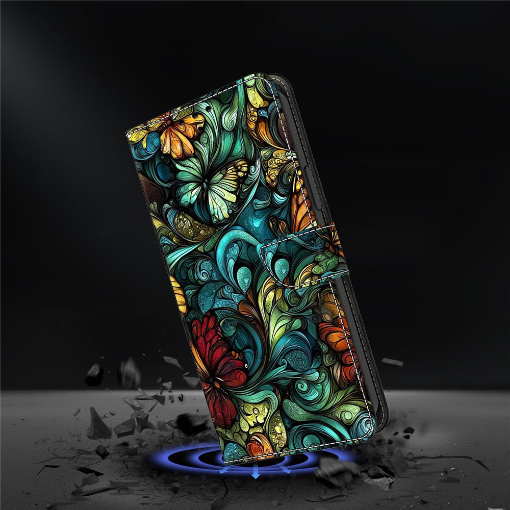 For iPhone 17 Pro Max Wallet Case Pattern Printing PU Leather Flip Stand Phone Cover - Watercolor Flowers and Plants