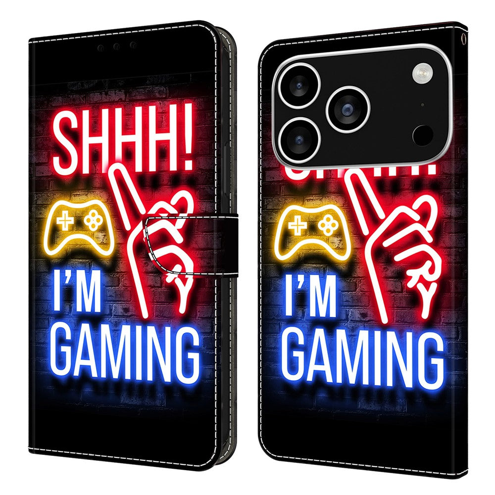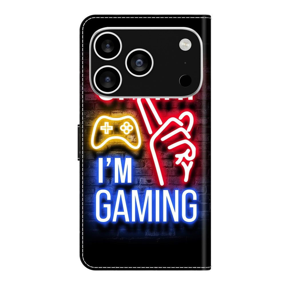 For iPhone 17 Pro Max Wallet Case Pattern Printing Stand Leather Flip Phone Cover - Neon