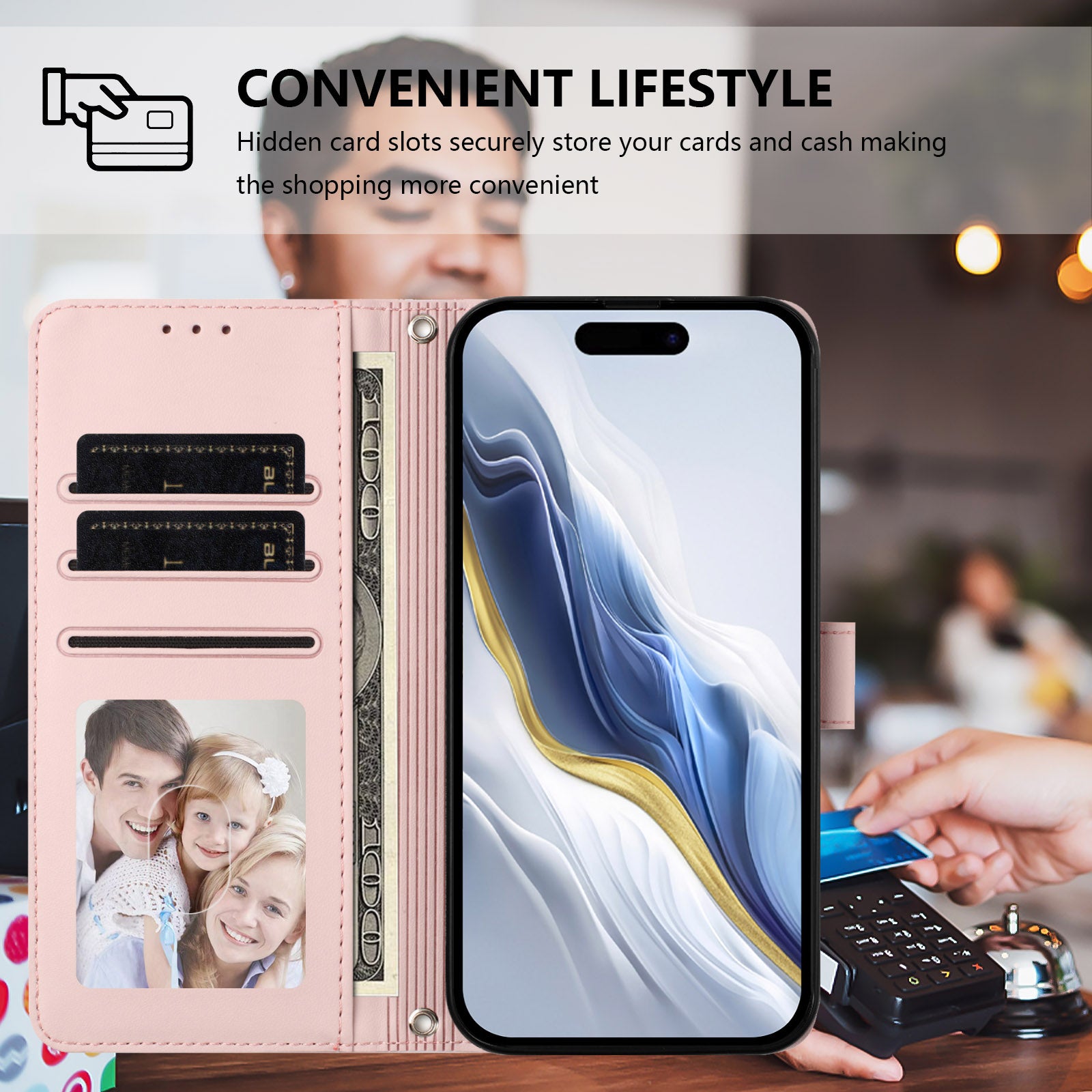 For iPhone 17 Pro Max Wallet Case with Wrist Strap Love Cat Pattern Imprint Leather Phone Cover - Pink
