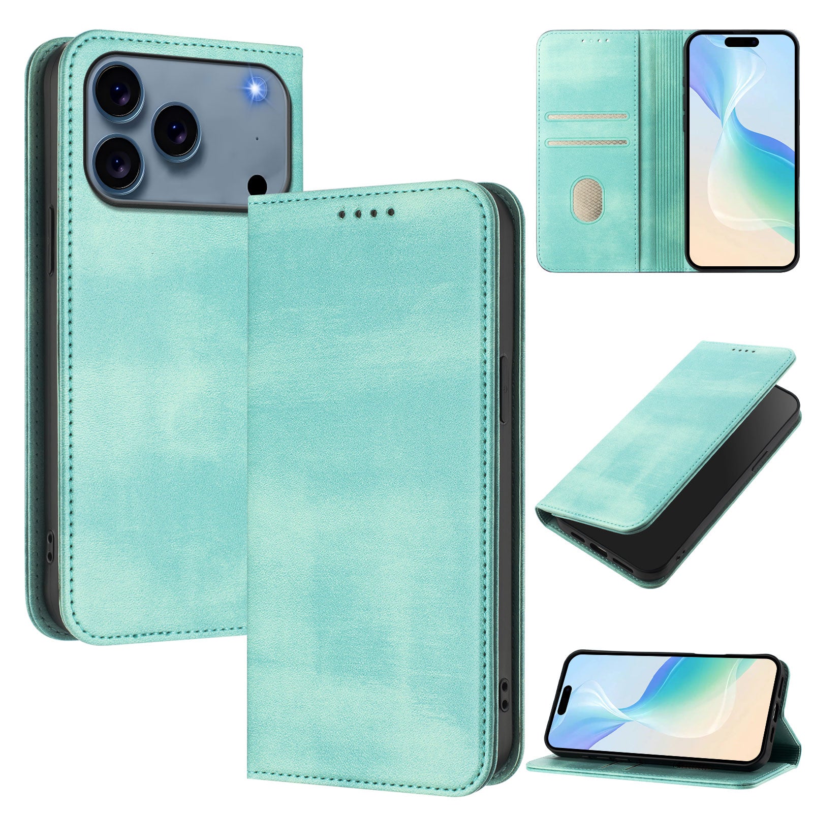 For iPhone 17 Pro Max Wallet Cases Retro Texture RFID Blocking Leather Phone Cover - Mint Green