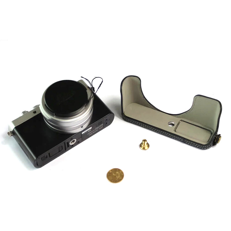 Uniqkart for Leica D-lux7 Camera Case Genuine Leather Half Body Cover - Black