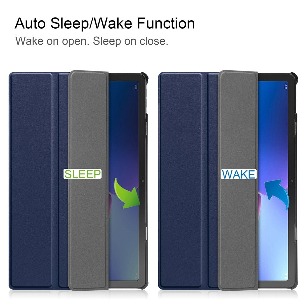 For Lenovo Tab M10 Plus (3rd Gen) PU Leather Trifold Stand Case Auto Sleep / Wake Tablet Full Protection Cover - Dark Blue