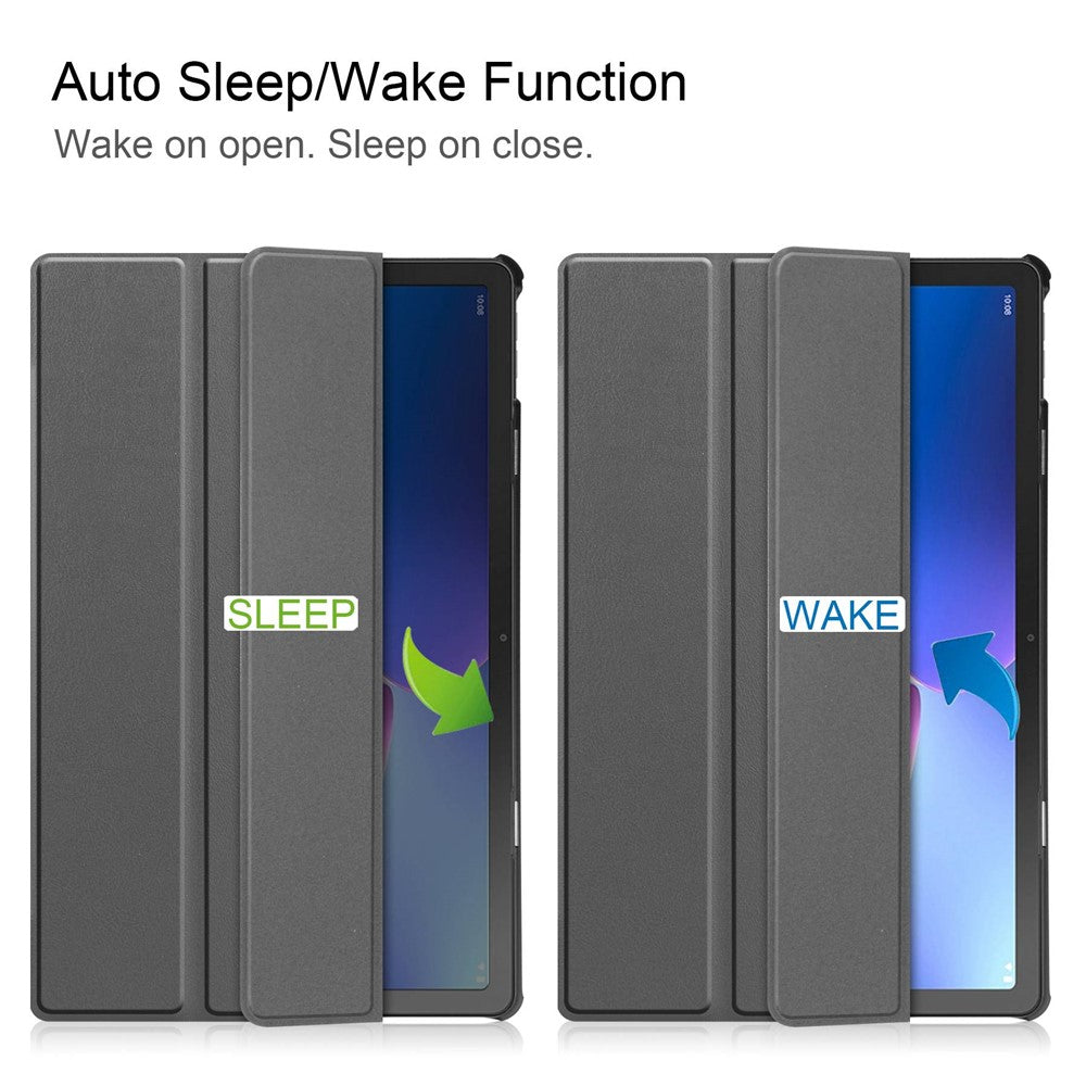 For Lenovo Tab M10 Plus (3rd Gen) PU Leather Trifold Stand Case Auto Sleep / Wake Tablet Full Protection Cover - Grey