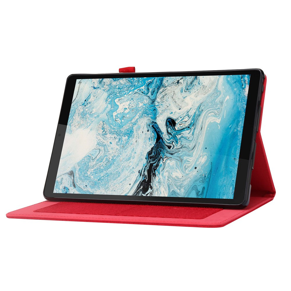 For Lenovo Tab M10 Plus (3rd Gen) Tablet Case Cloth Texture Card Holder Leather Cover - Red