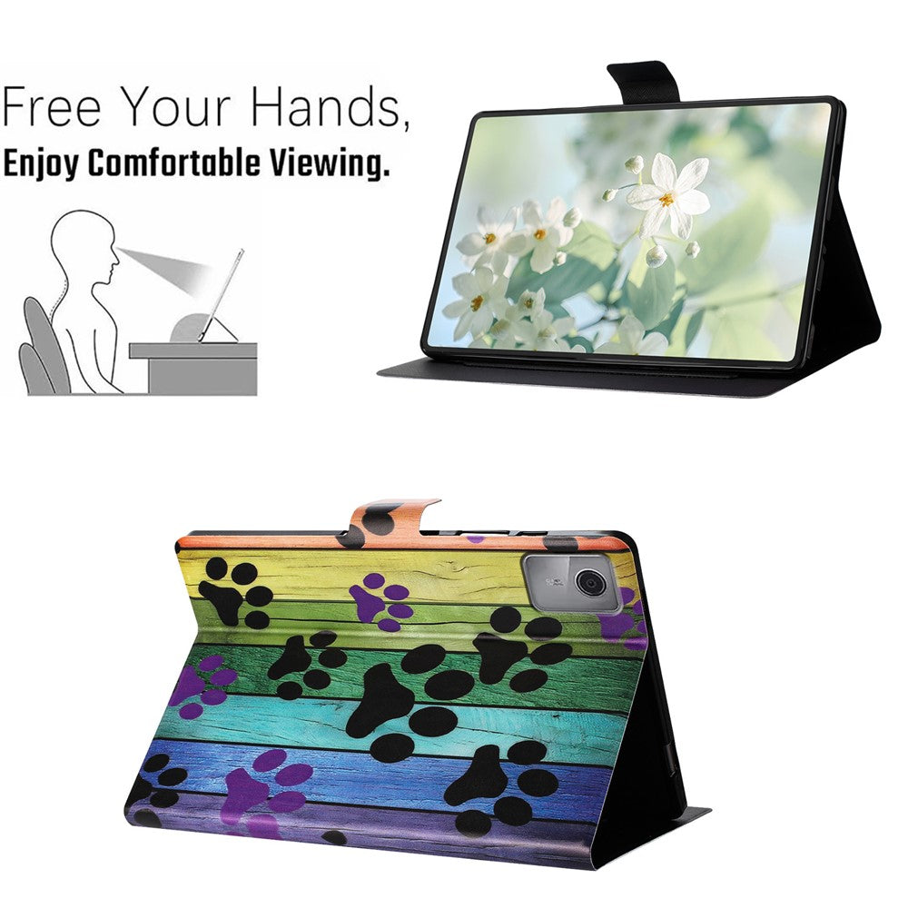 For Lenovo Tab M11 TB-330FU Case Pattern Printed Stand Litchi Texture Leather Tablet Cover with Card Slots - Cat Claw