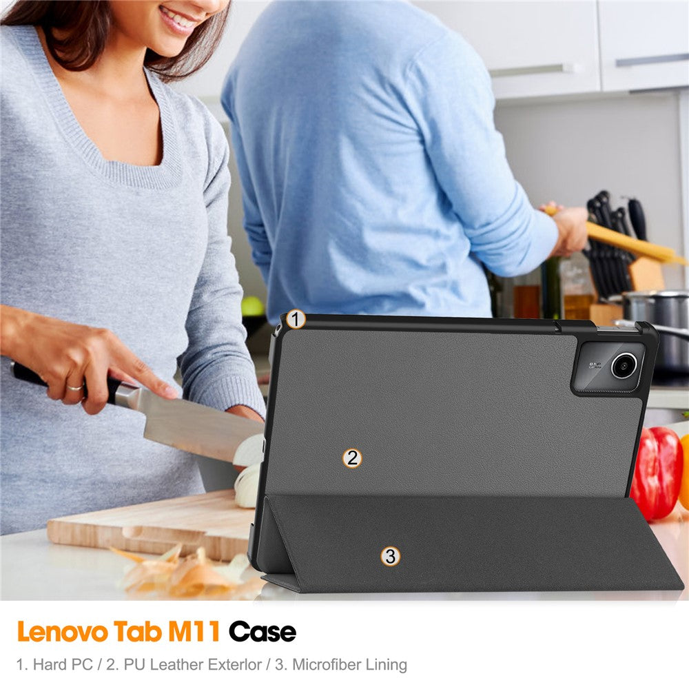 For Lenovo Tab M11 / Xiaoxin Pad 11 2024 Case Tri-fold Stand PU Leather+PC Tablet Cover - Grey