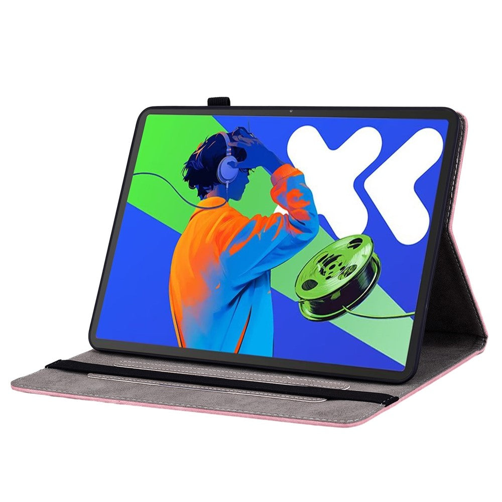 For Lenovo Tab P12 Pro 12.7 2025 / Xiaoxin Pad Pro 12.7 (2025) Case Card Holder Anti-Scratch Leather Cover Rose Flower Imprint - Pink
