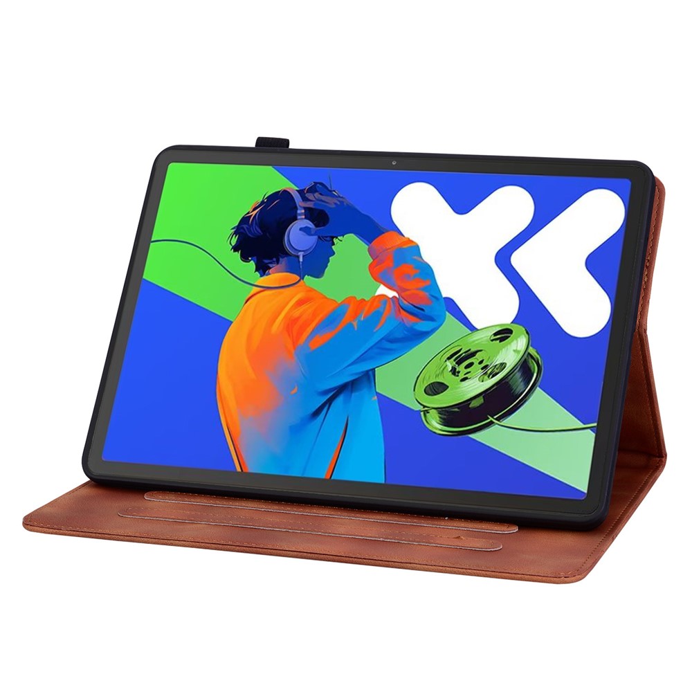 For Lenovo Tab P12 Pro 12.7 2025 / Xiaoxin Pad Pro 12.7 (2025) Case Lily Flower Imprint Card Slots Leather Tablet Cover - Brown