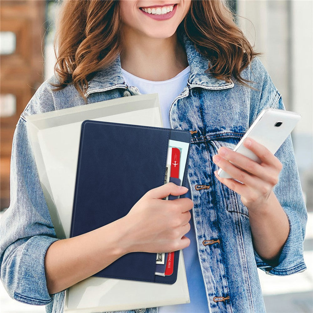 For Lenovo Tab P12 Stand Protective Cover PU Leather Wallet Tablet Case with Pencil Holder - Blue