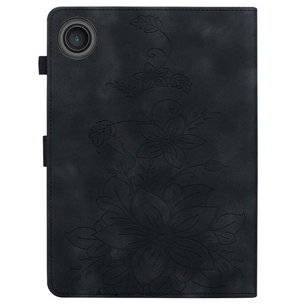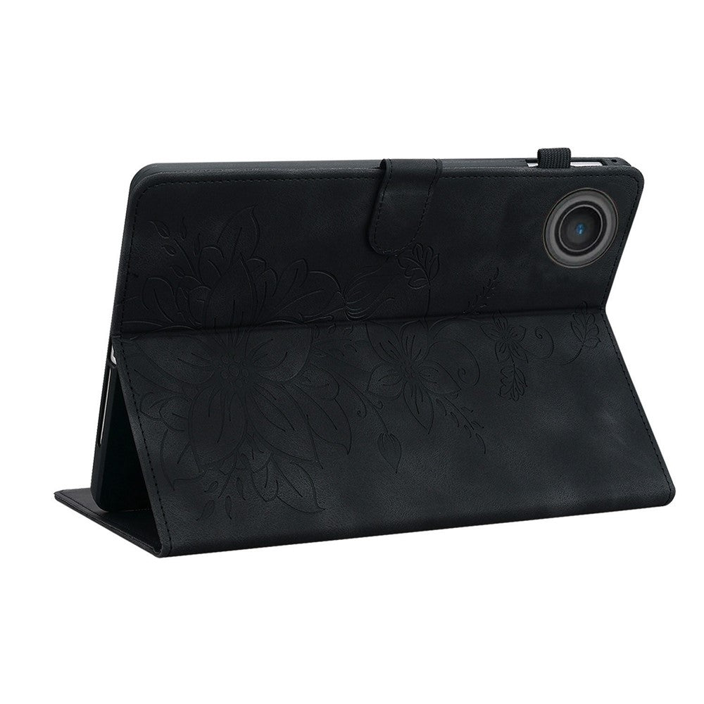 For Lenovo Tab TB311FU Case Lily Flower Imprint Card Slots Leather Tablet Cover - Black