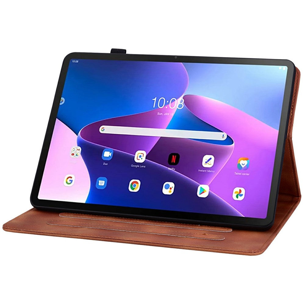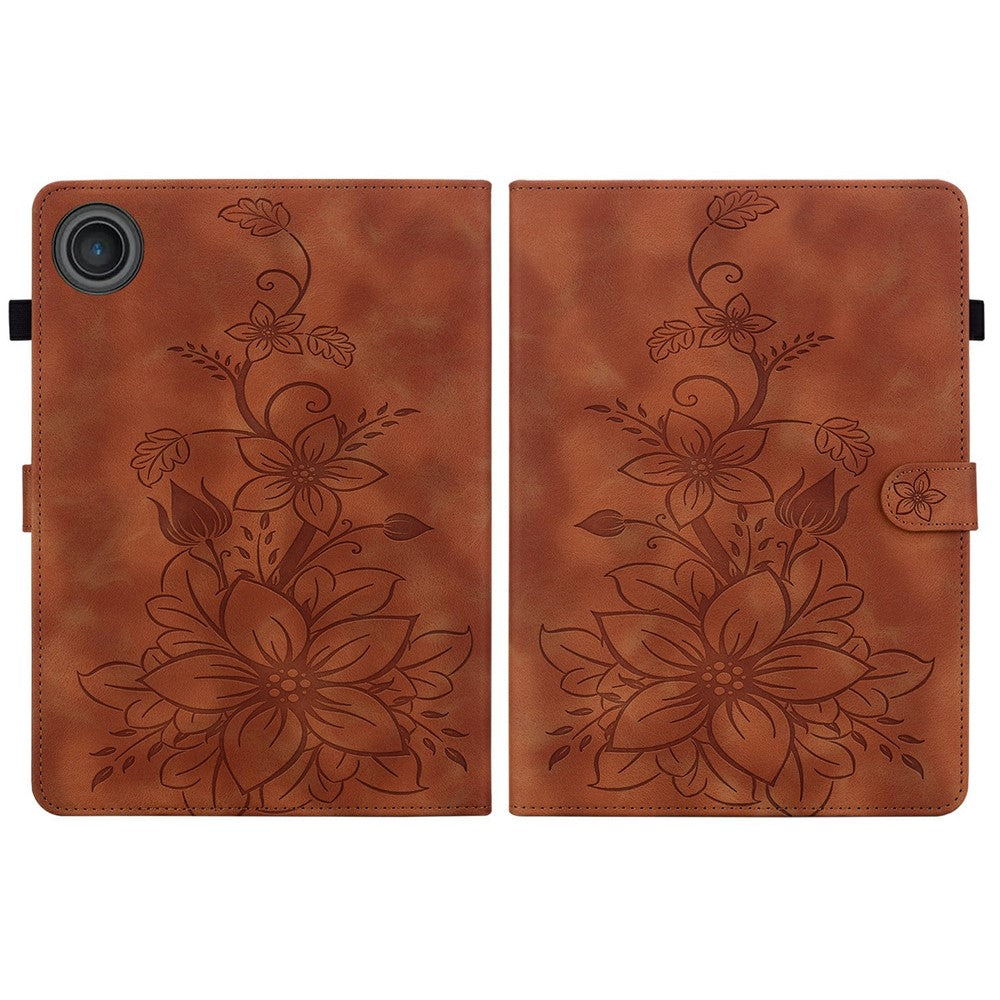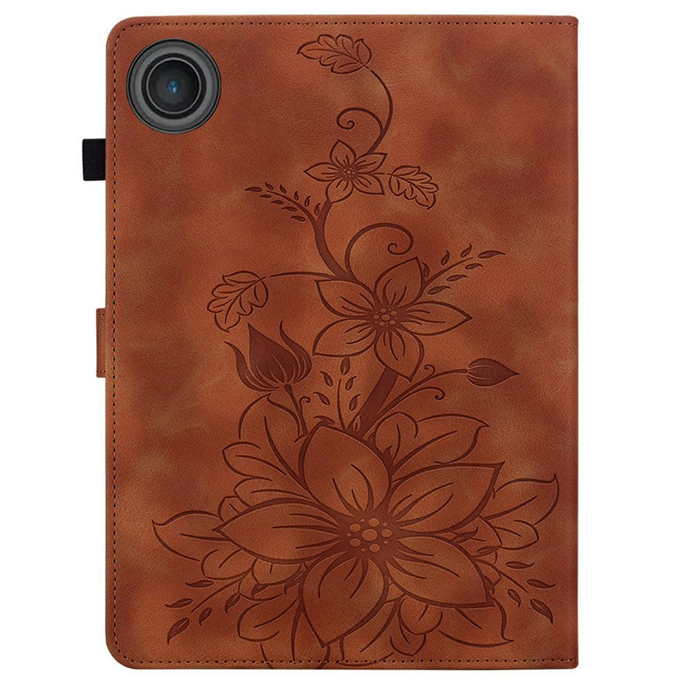 For Lenovo Tab TB311FU Case Lily Flower Imprint Card Slots Leather Tablet Cover - Brown