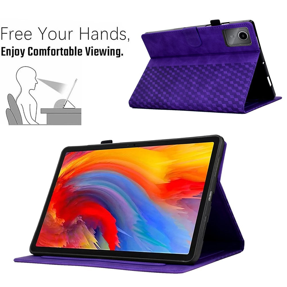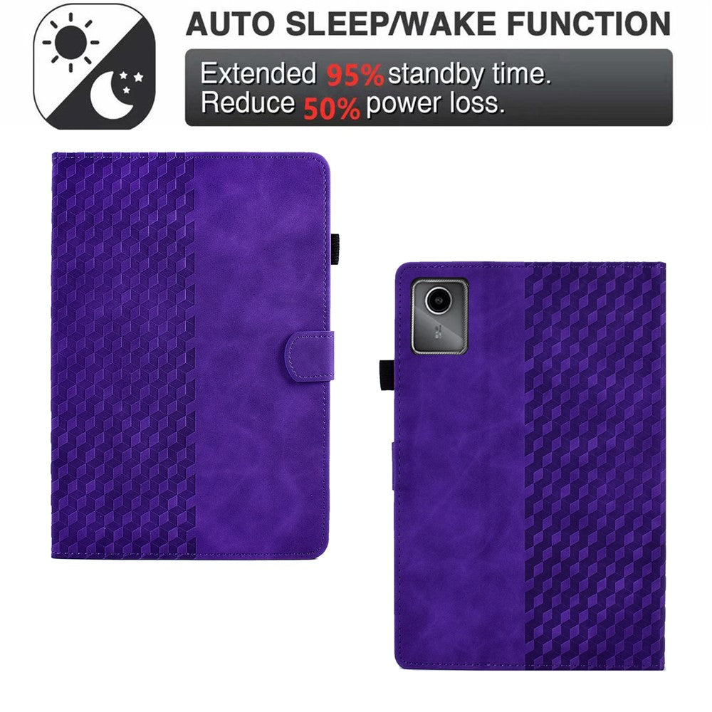 For Lenovo Xiaoxin Pad 11 2025 Case Card Slots Block Pattern Leather Cover - Purple