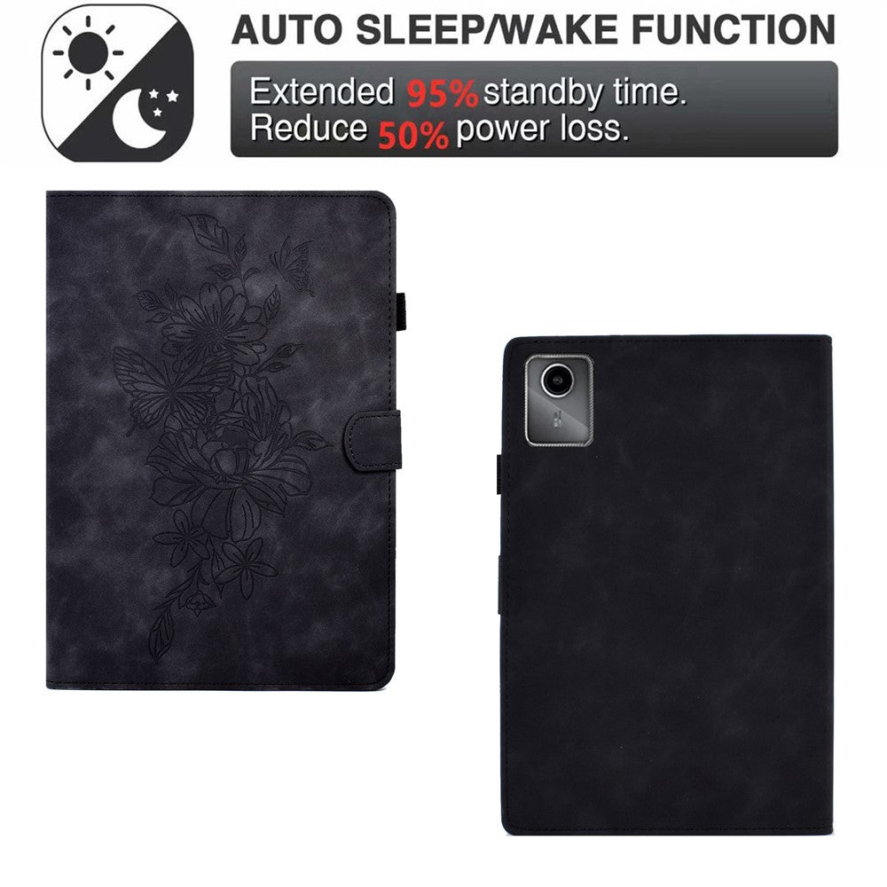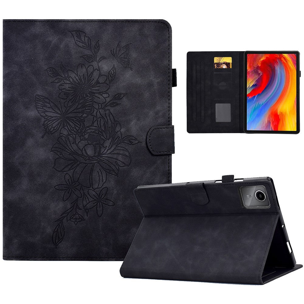 For Lenovo Xiaoxin Pad 11 2025 Case Flower Butterfly Imprinted Card Slots Leather Cover - Black