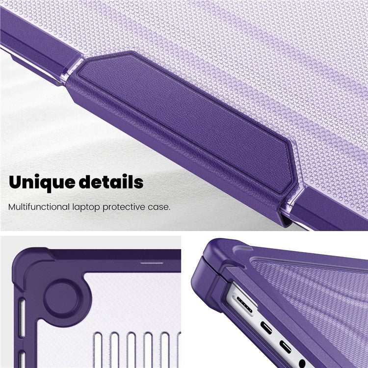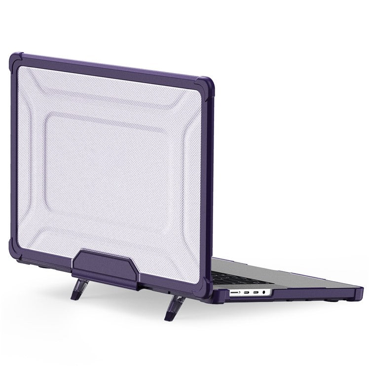 For MacBook Pro 16 inch (2024) (2023) (2021) (A2485 M1 Pro / M1 Max / A2780) Anti-Slip Laptop Case Heat Dissipation PC+TPU Kickstand Cover - Purple