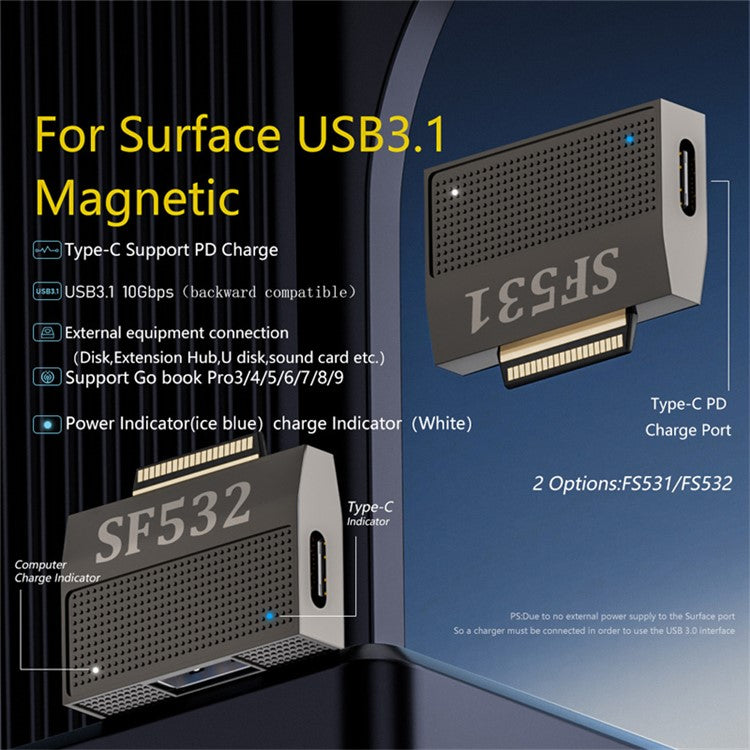 For Microsoft Surface Pro 9 / 8 / 7x / 6 / 5 / Go 2 / 3 Expansion Power Adapter Data Converter (SF532)