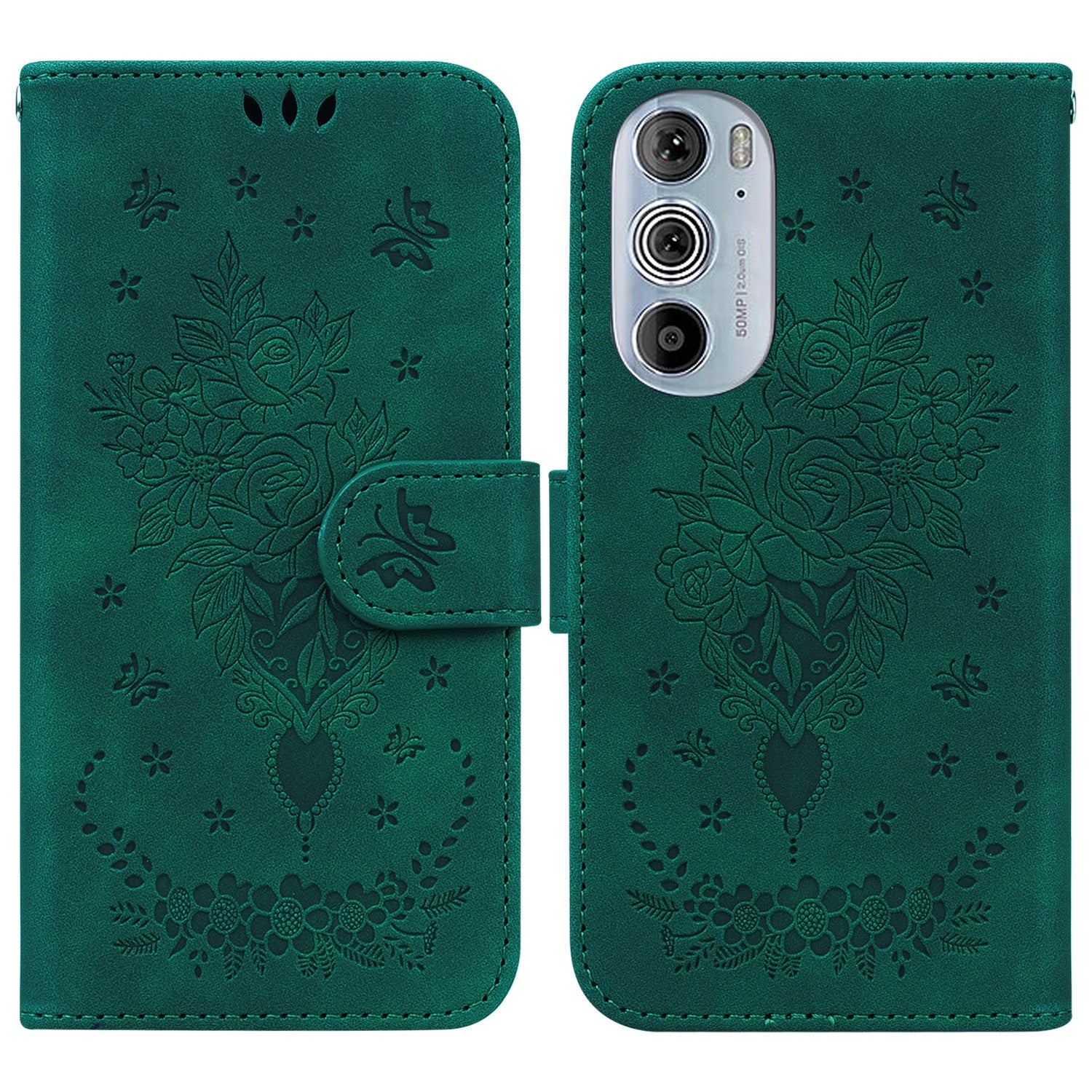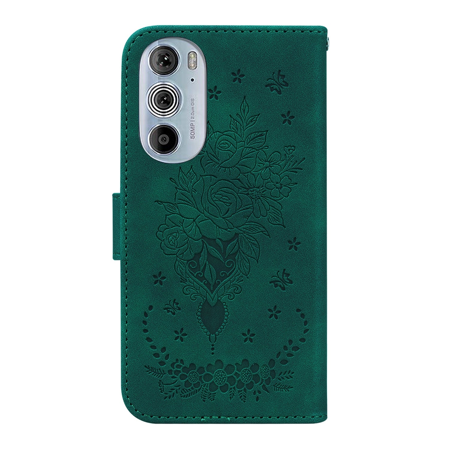 For Motorola Edge+ 2022 / Edge 30 Pro Butterfly Rose Embossed Leather Phone Case(Green)