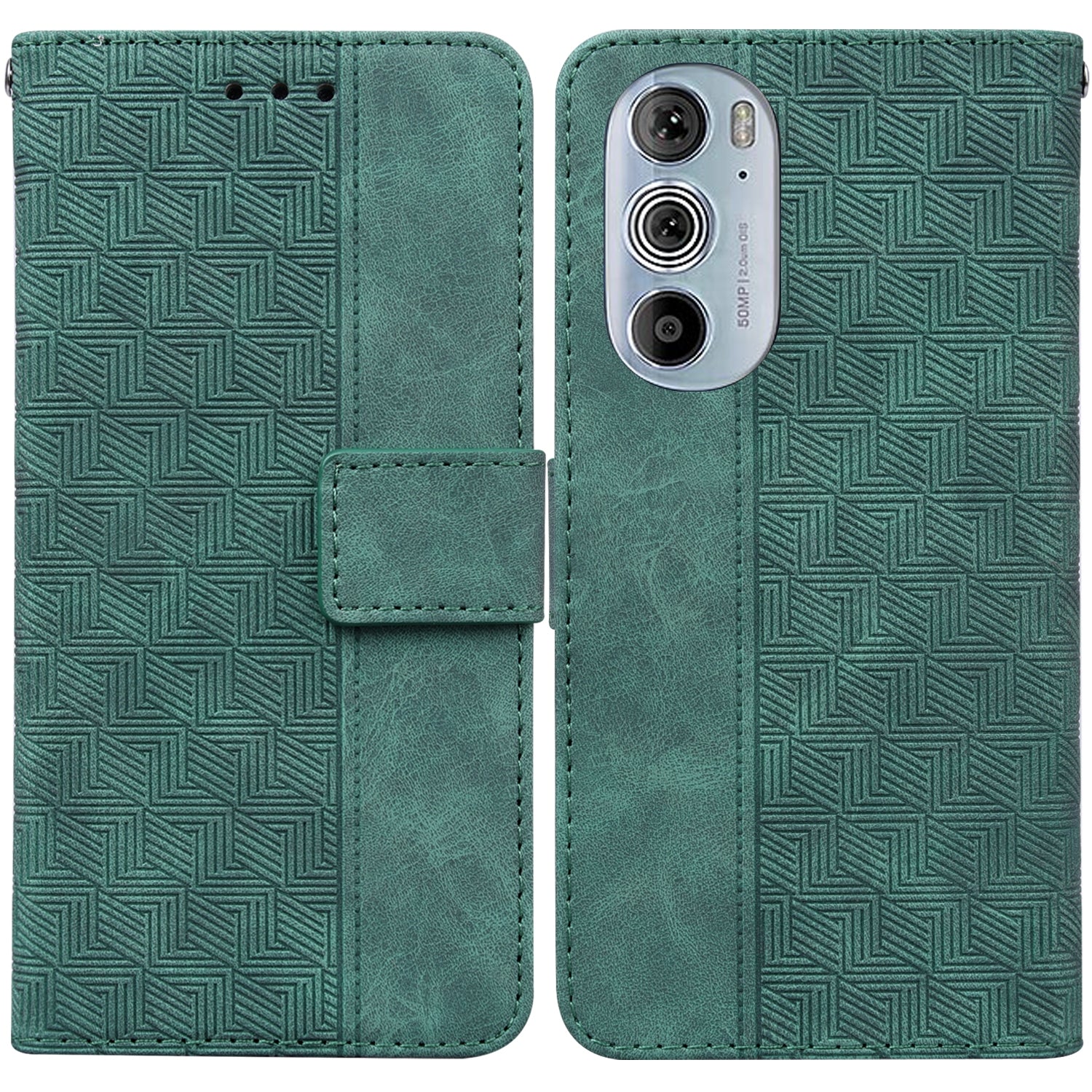 For Motorola Edge+ 2022 / Edge 30 Pro Geometric Embossed Leather Phone Case(Green)