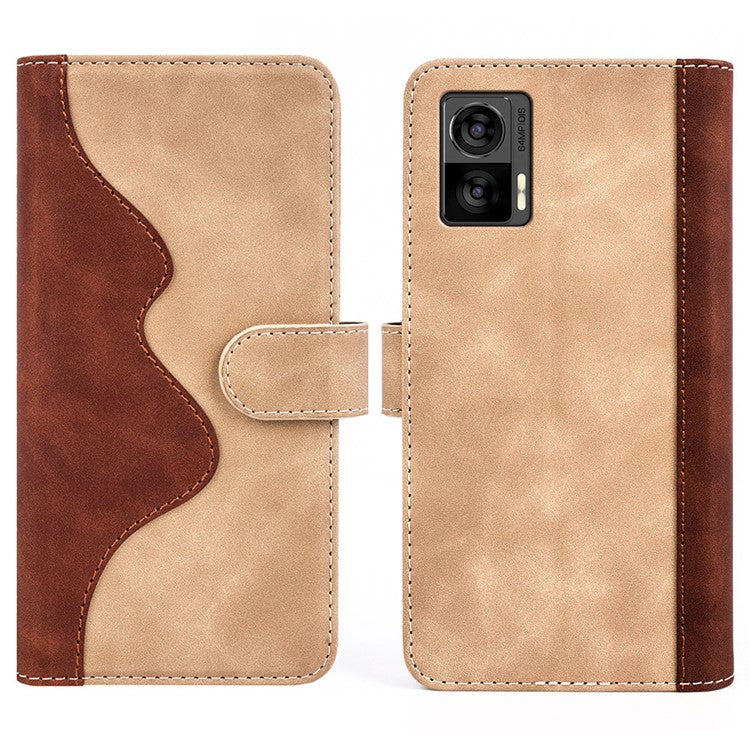 For Motorola Edge 30 Neo 5G Color Splicing PU Leather Shockproof Stand Wallet Case Magnetic Clasp Protective Cover - Yellow