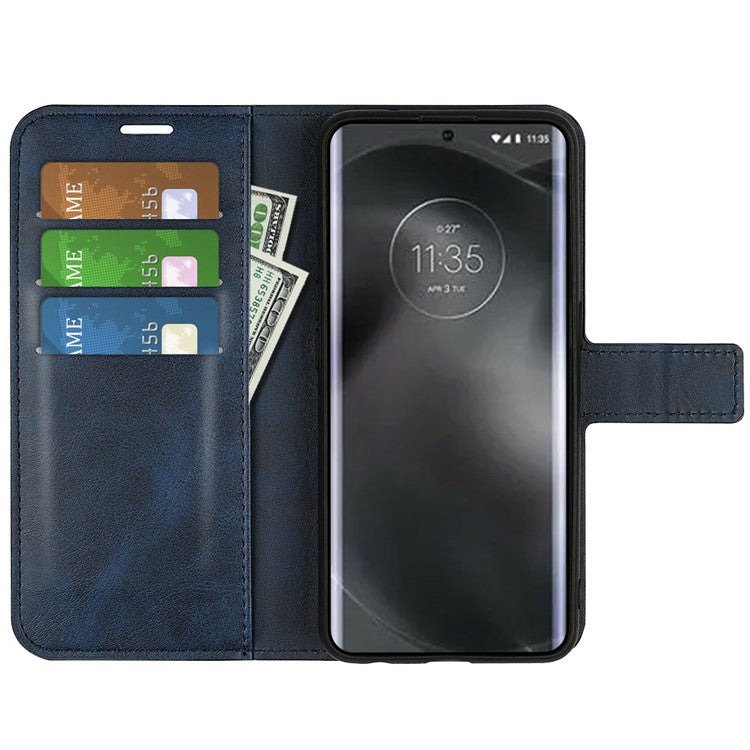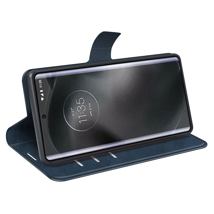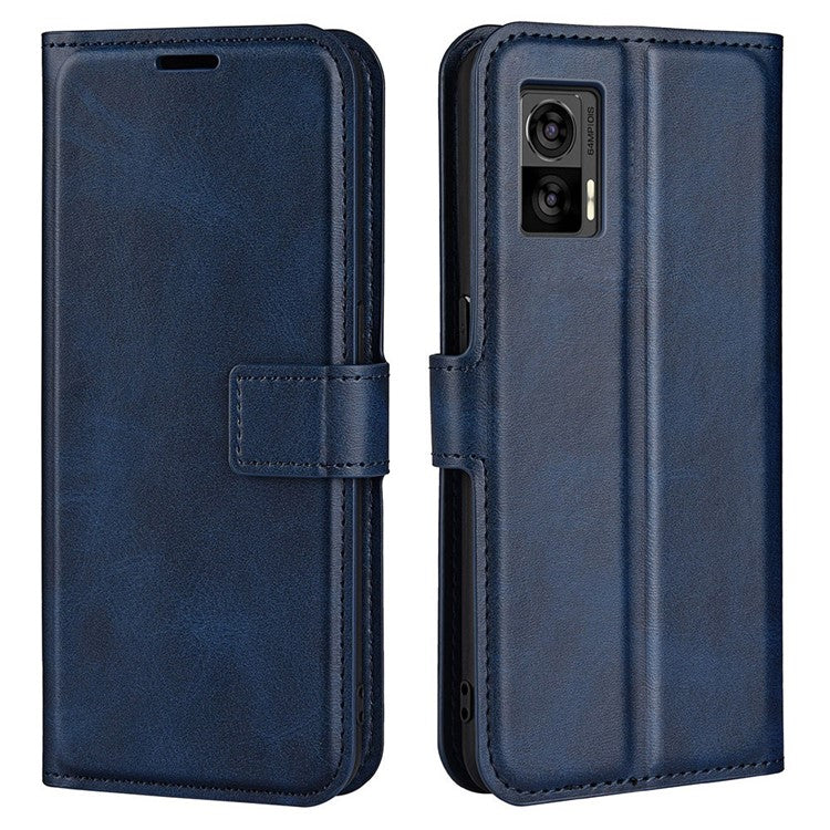 For Motorola Edge 30 Neo 5G / Edge 30 Lite Calf Textured PU Leather Flip Phone Case Square Magnetic Clasp Stand Wallet Shockproof Folio Cover - Blue