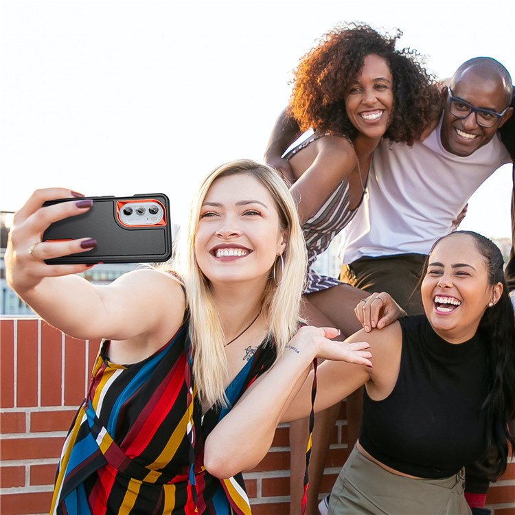 For Motorola Edge 30 Pro (Motorola Edge+ (2022)) Defender Series Hard PC + Soft TPU Kickstand Case Anti-drop Phone Cover - Black/Orange