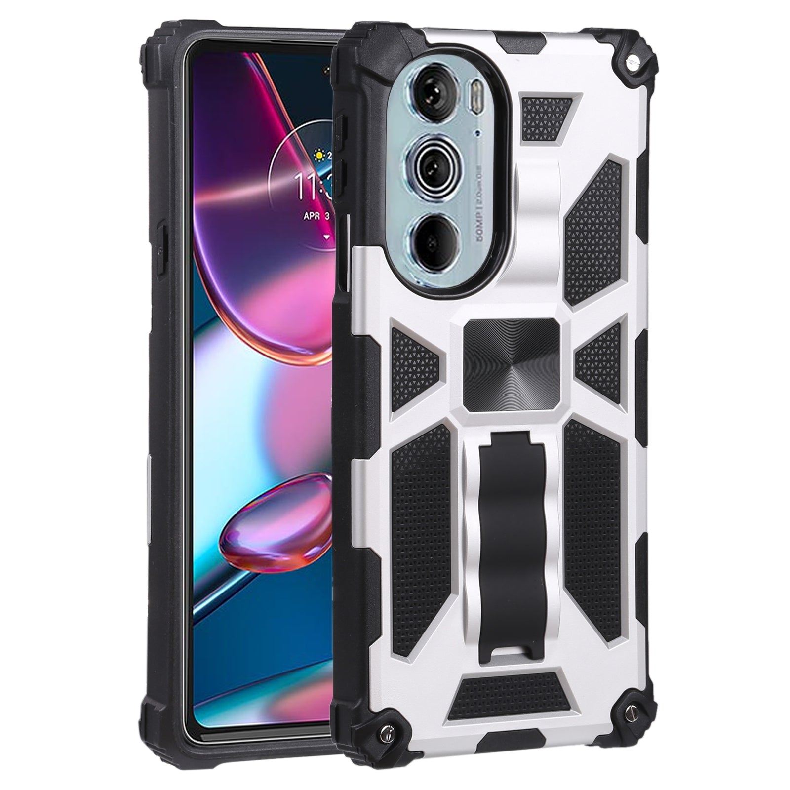 For Motorola Edge 30 Pro Shockproof TPU + PC Magnetic Protective Phone Case with Holder(Silver)