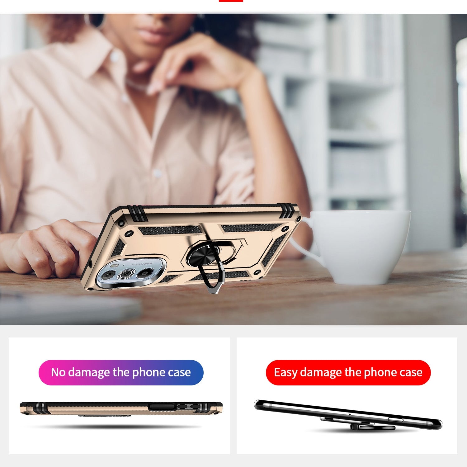 For Motorola Edge 30 Pro Shockproof TPU + PC Phone Case with Holder(Gold)