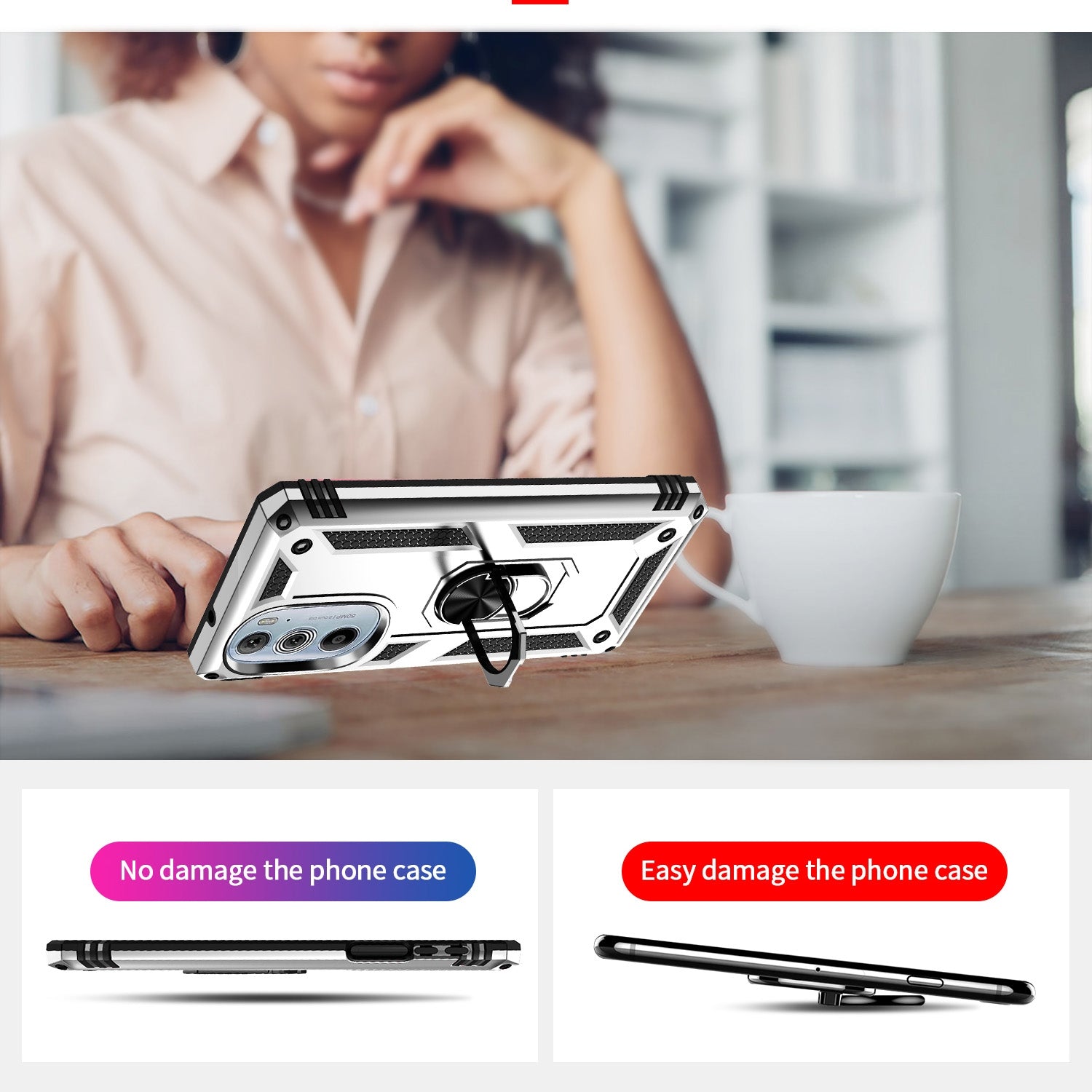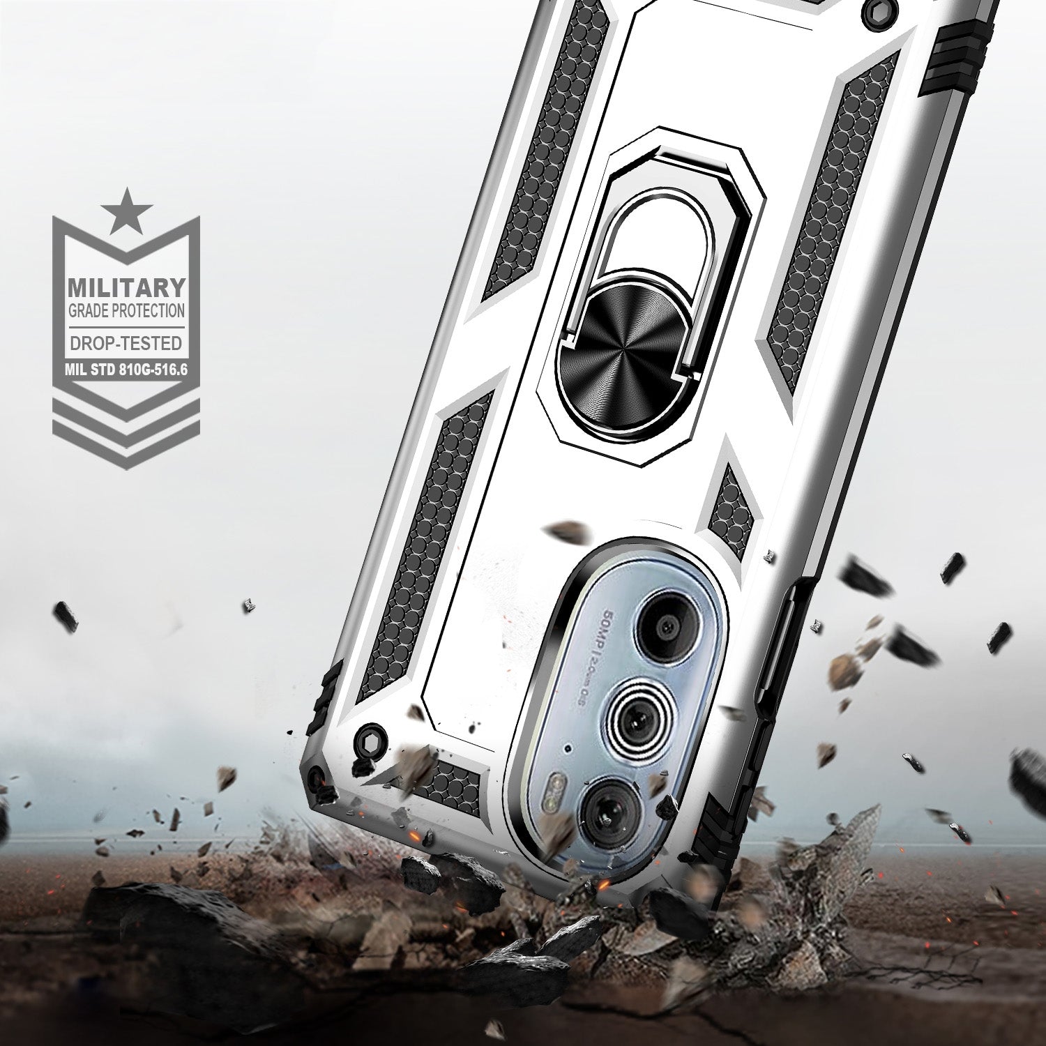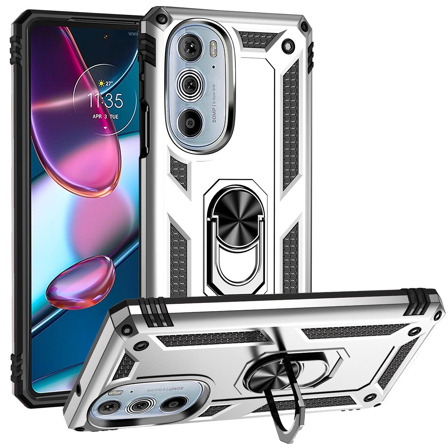 For Motorola Edge 30 Pro Shockproof TPU + PC Phone Case with Holder(Silver)