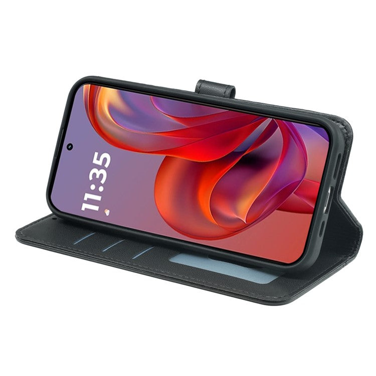 For Motorola Edge 50 Neo 5G / Moto S50 5G / Thinkphone 25 5G Wallet Case Magnetic Snap Leather Phone Cover with Strap - Black