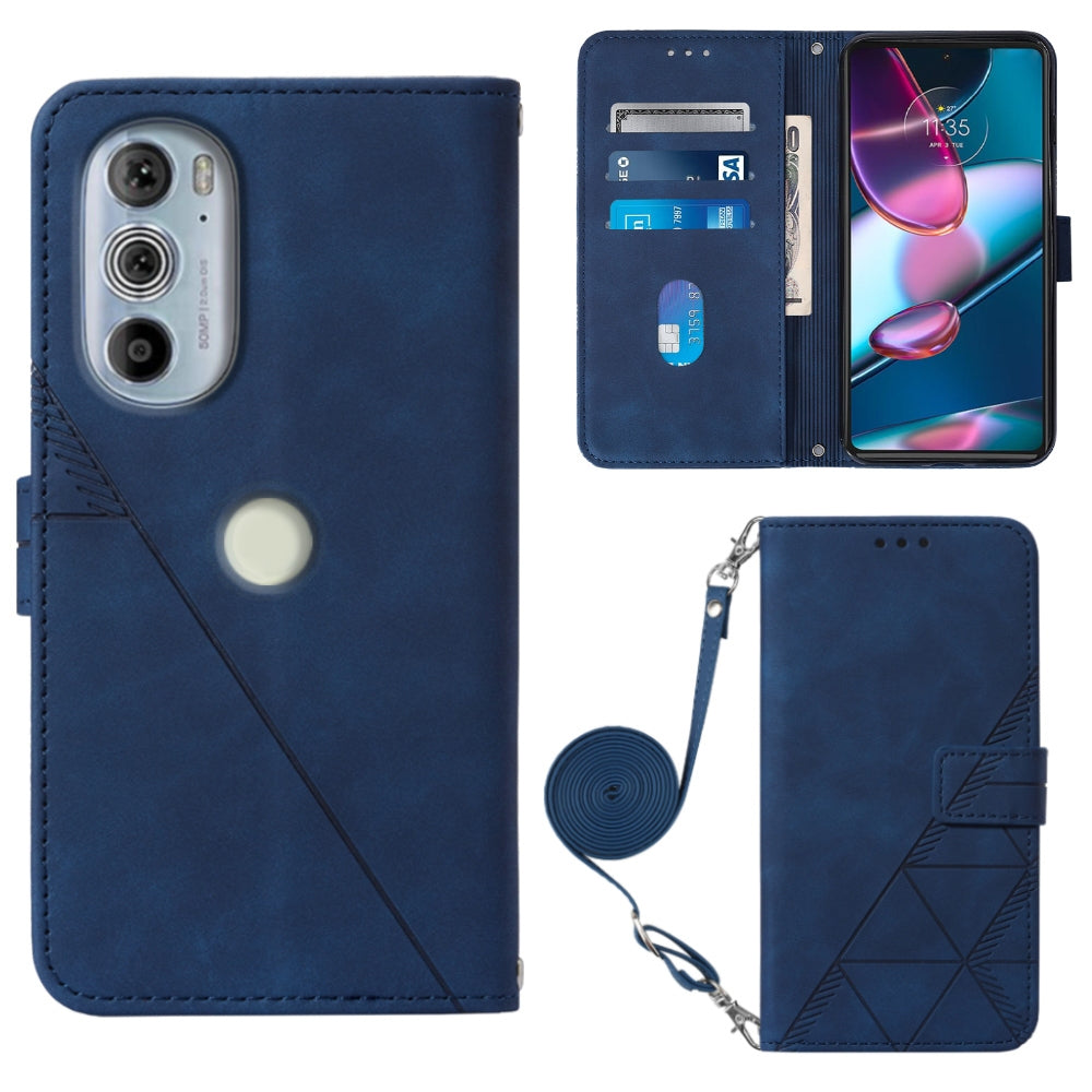 For Motorola Moto Edge 30 Pro / Edge+ 2022 Crossbody 3D Embossed Flip Leather Phone Case(Blue)