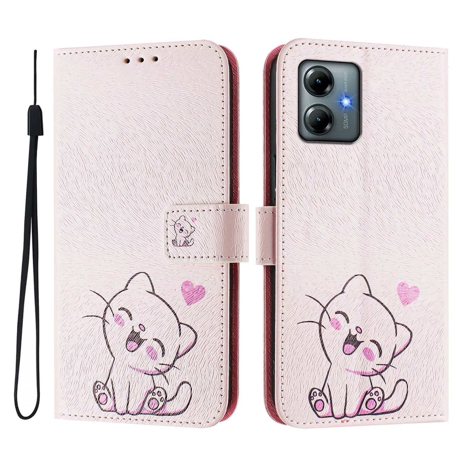 For Motorola Moto G Play (2025) 4G Case Pattern Printing Wallet Phone Cover with Strap - Cute Cat