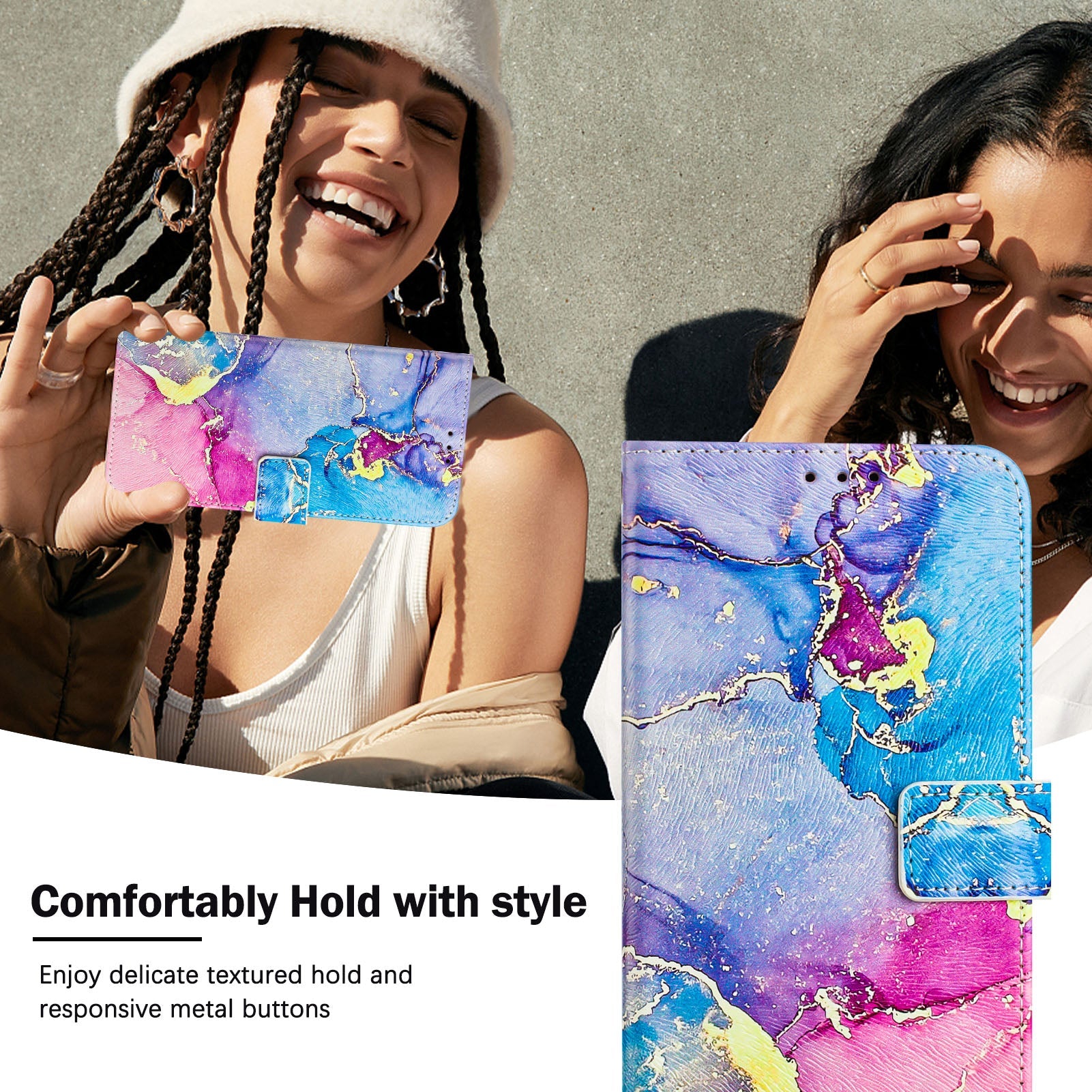 For Motorola Moto G Play (2025) 4G Case Pattern Printing Wallet Phone Cover with Strap - Multicolor Marble