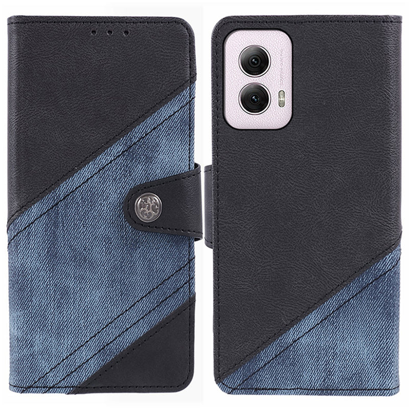 For Motorola Moto G Power (2024) Case Splicing Crazy Horse Texture Magnetic Phone Cover - Black