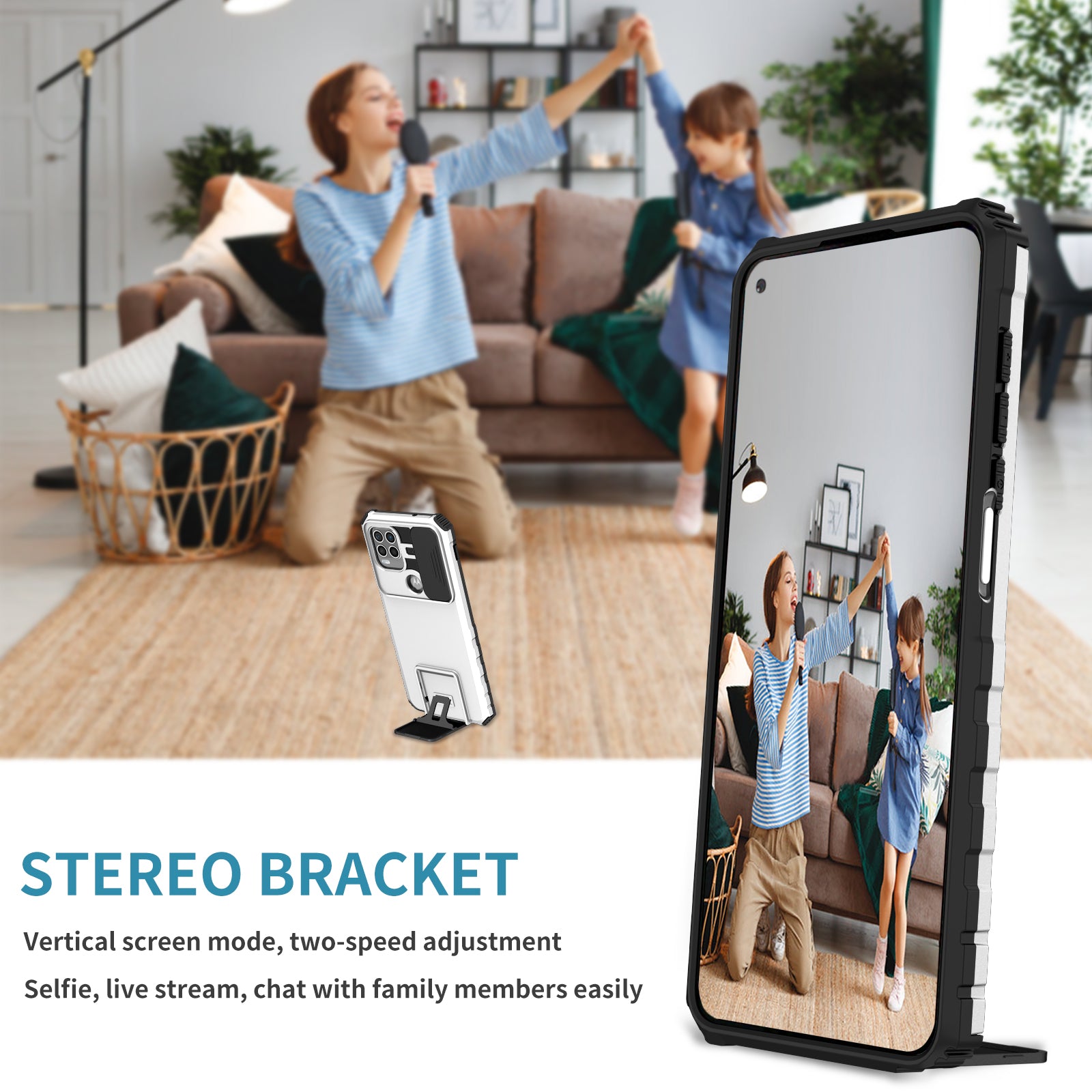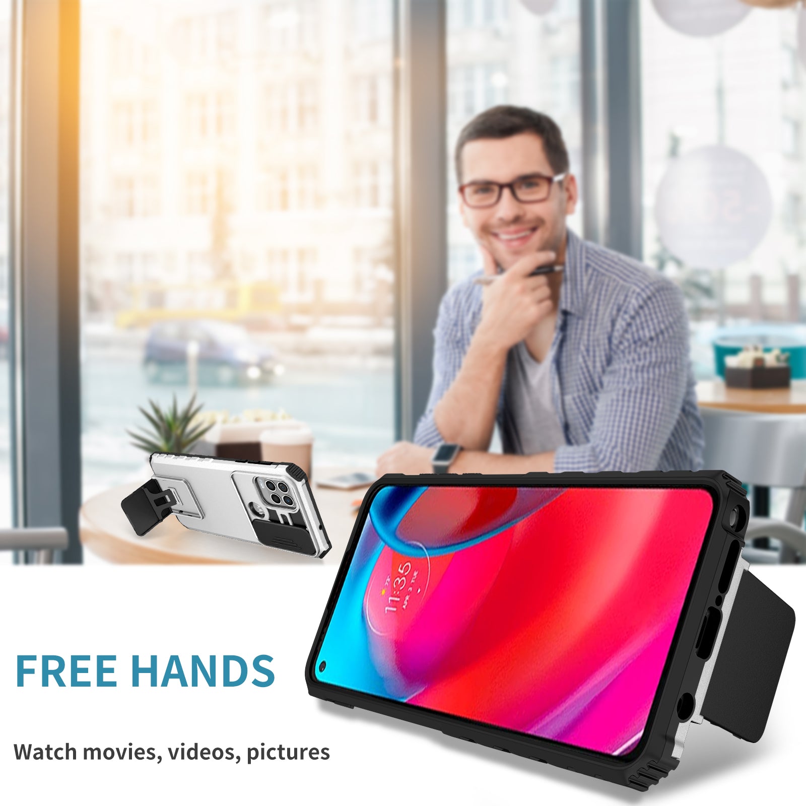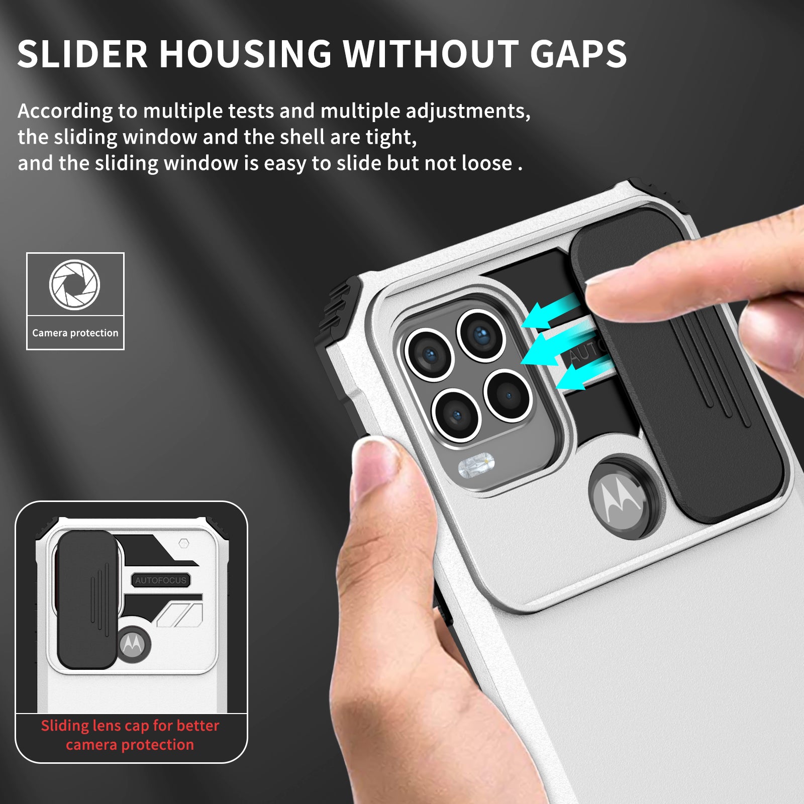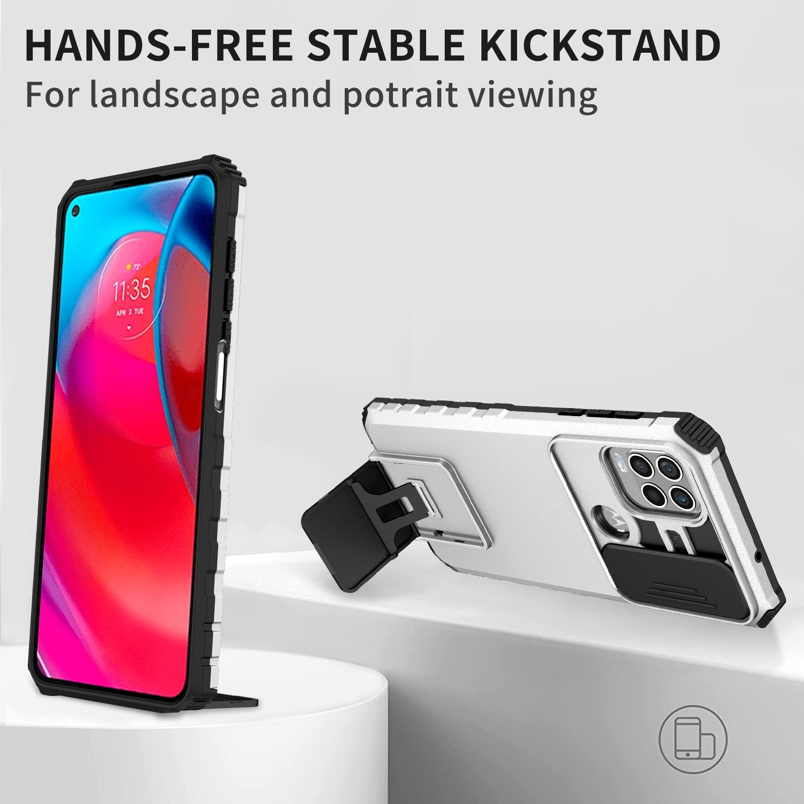 for Motorola Moto G Stylus 5G (2021) Phone Protector Slide Camera Hard PC + Flexible TPU Cover Kickstand Case - White