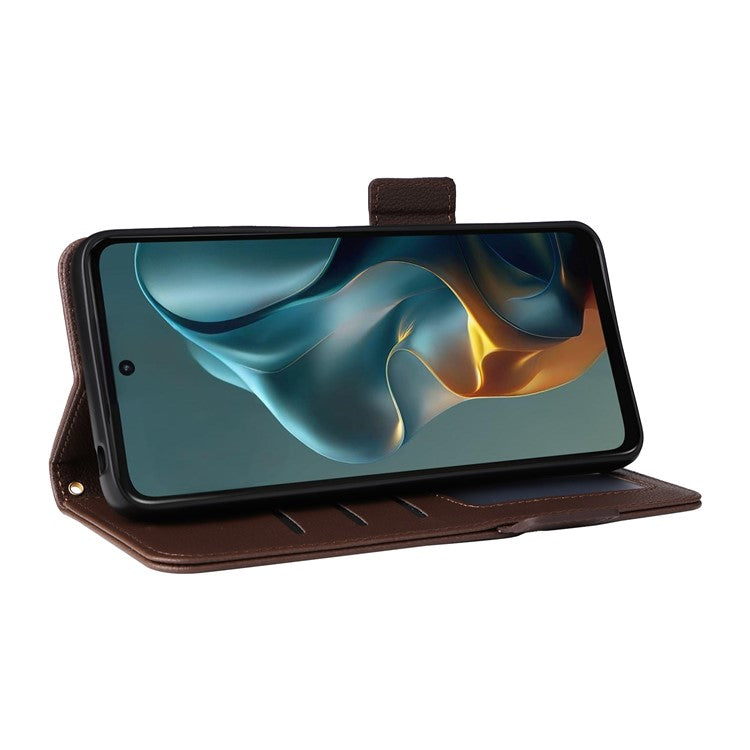 For Motorola Moto G05 4G / E15 4G Case Litchi Texture PU Leather Wallet Flip Phone Cover - Brown