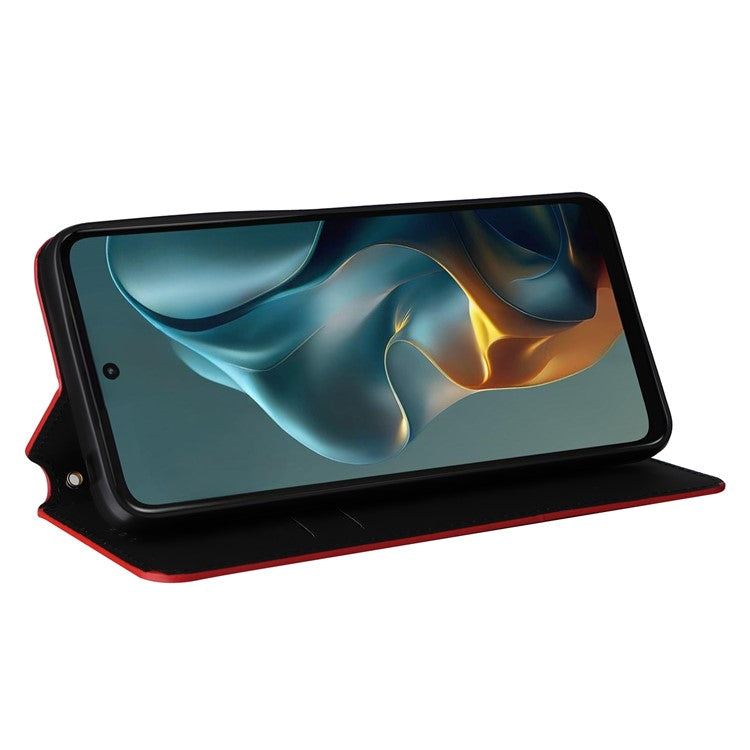 For Motorola Moto G05 4G / E15 4G Wallet Case Rhombus Imprinted Leather Phone Cover - Red
