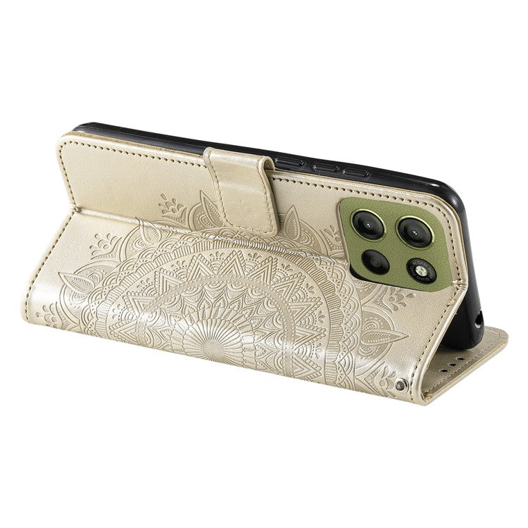 For Motorola Moto G15 4G Case Imprinted Totem PU Leather Wallet Stand Phone Cover - Gold