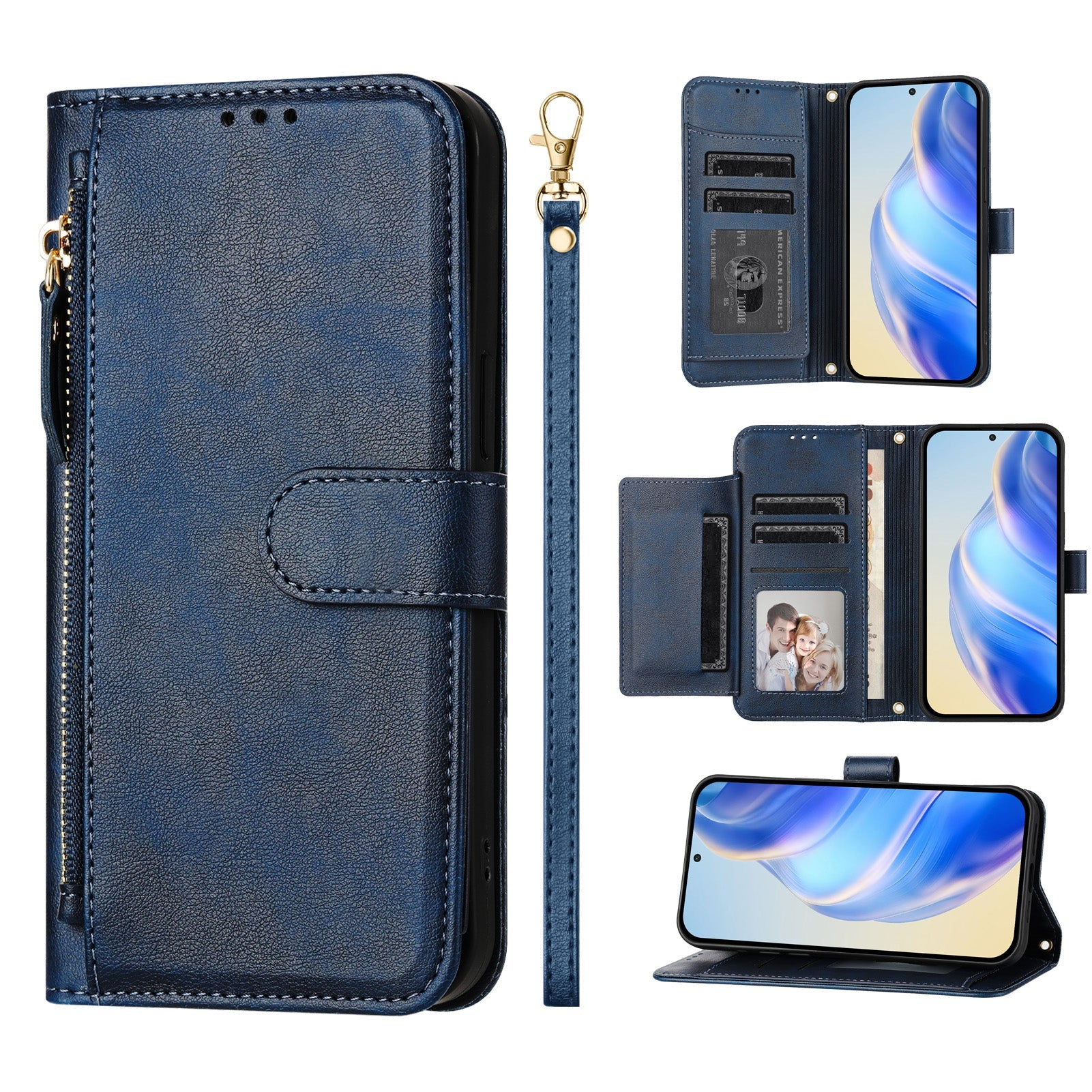 For Motorola Moto G15 4G Case Zipper Pocket Multiple Card Slots Leather Phone Cover - Blue