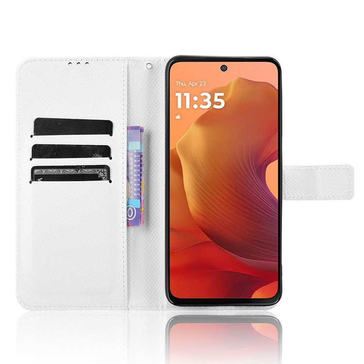 For Motorola Moto G15 4G / G15 Power 4G Case PU Leather Diamond Texture Wallet Phone Cover - White