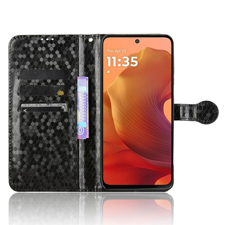 For Motorola Moto G15 4G / G15 Power 4G Wallet Case Dot Pattern Imprint PU Leather Phone Cover - Black