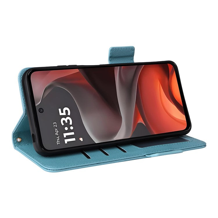 For Motorola Moto G15 Power 4G / G15 4G Case Litchi Texture PU Leather Wallet Flip Phone Cover - Baby Blue