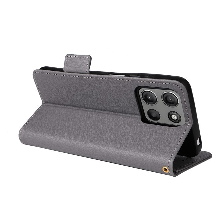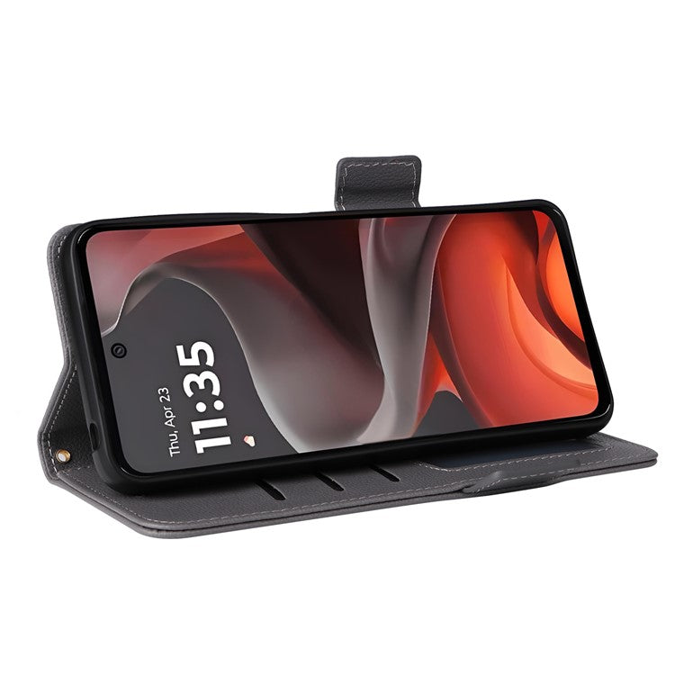 For Motorola Moto G15 Power 4G / G15 4G Case Litchi Texture PU Leather Wallet Flip Phone Cover - Grey