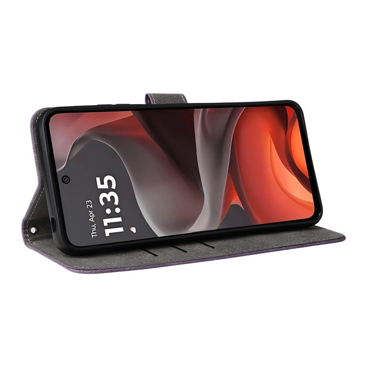 For Motorola Moto G15 Power 4G  /  G15 4G Wallet Case RFID Blocking PU Leather Cover Stand View - Purple